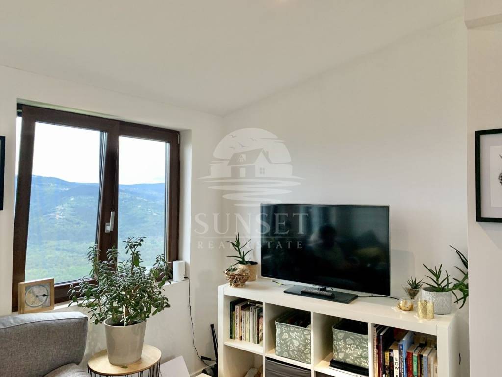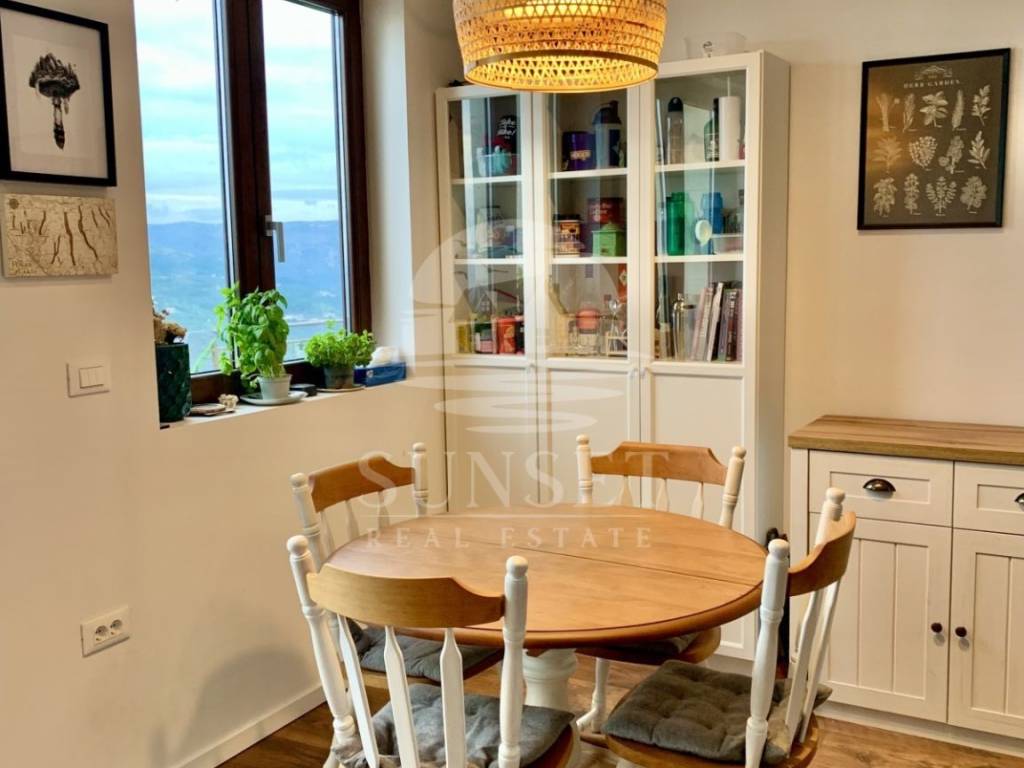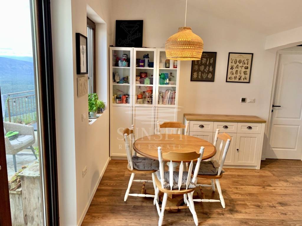 The first floor serves as the main living area and includes a living room, kitchen with dining area, three bedrooms, a walk-in closet, laundry room, bathroom, additional storage, and a large terrace. The terrace offers a spectacular, open view of the Mirna River valley, the surrounding hills, and, in the distance the sea. Its the perfect spot for relaxing, dining, or enjoying the magical Istrian sunsets.