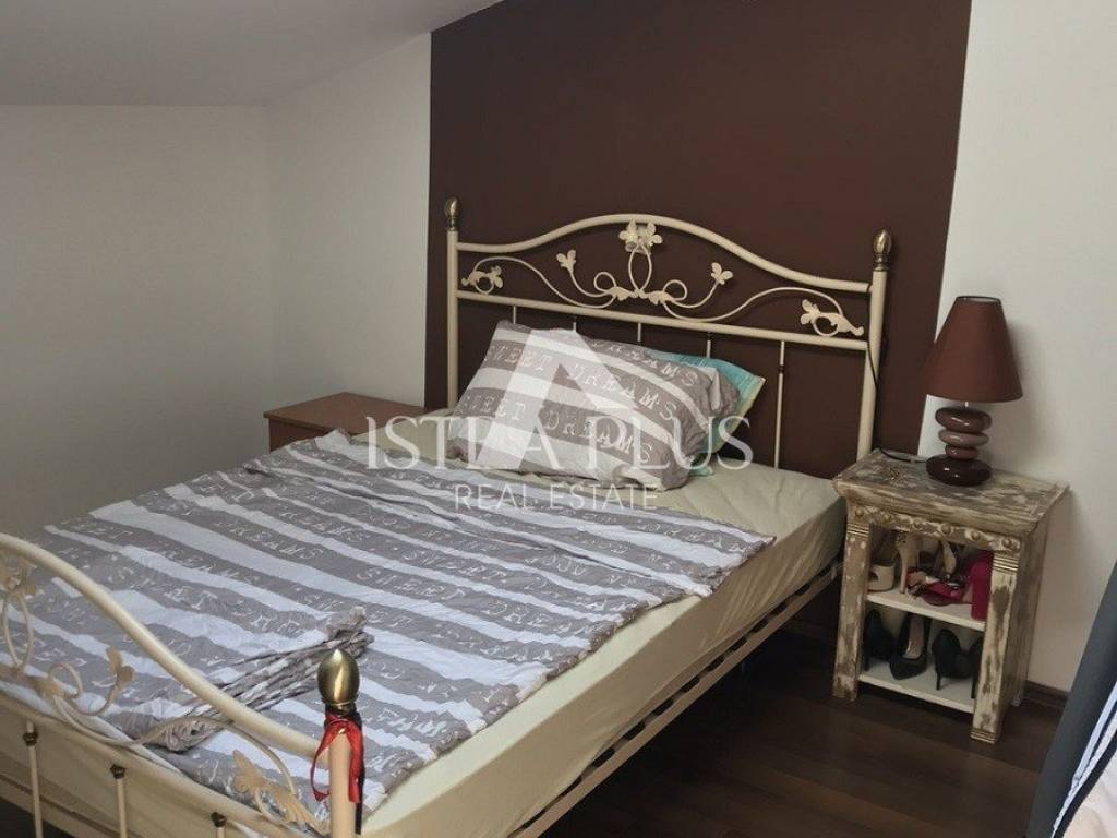 S02 Apartment for sale near Porec 1.5km, first beach 800m from the apartment. Quiet and well-maintained place. Flat on the third floor 92m2 - two bedrooms, bathroom, large living room, dining room, kitchen and a closed terrace. Storage in the building. The apartment is sold with furniture. Part of the apartment has a view of the sea!