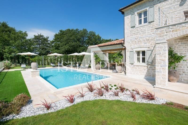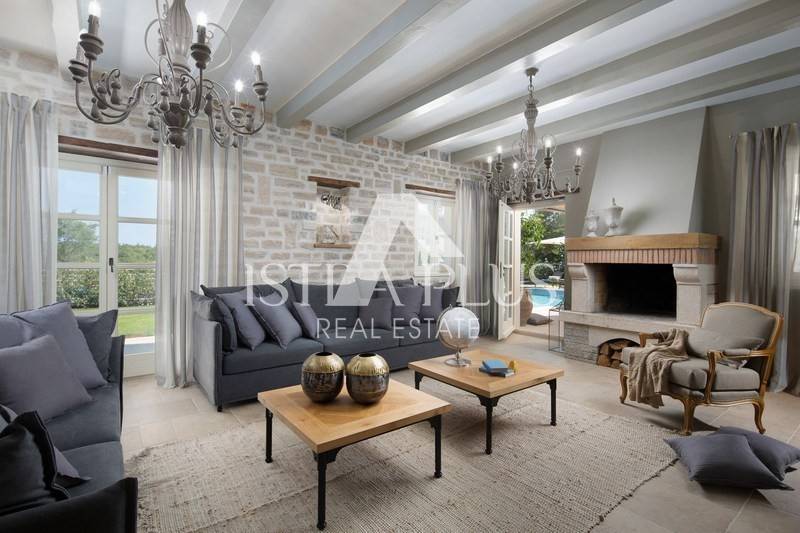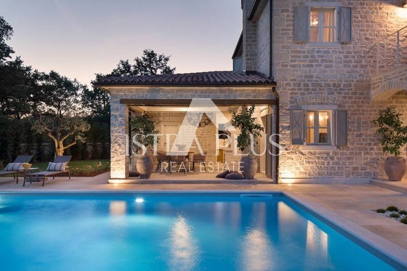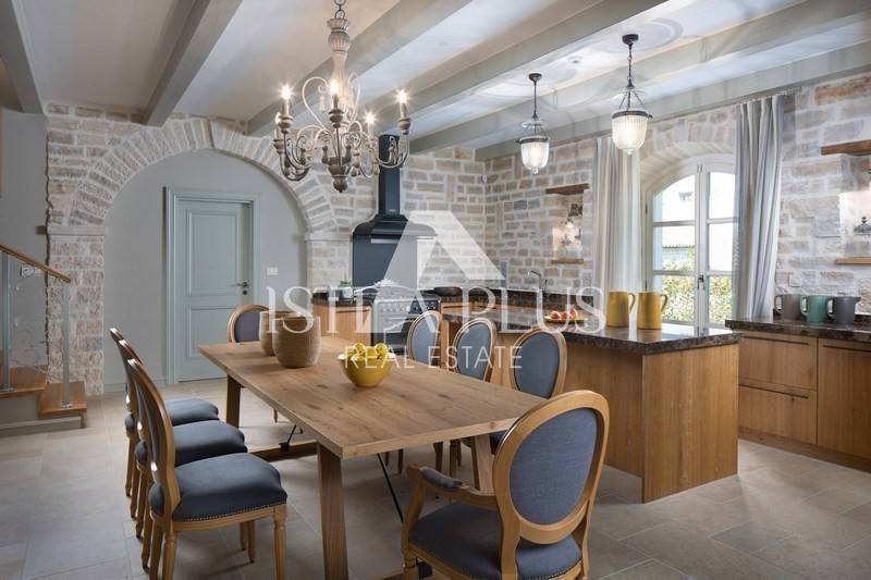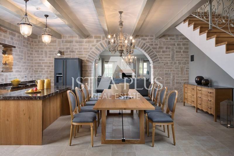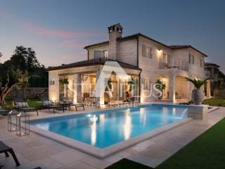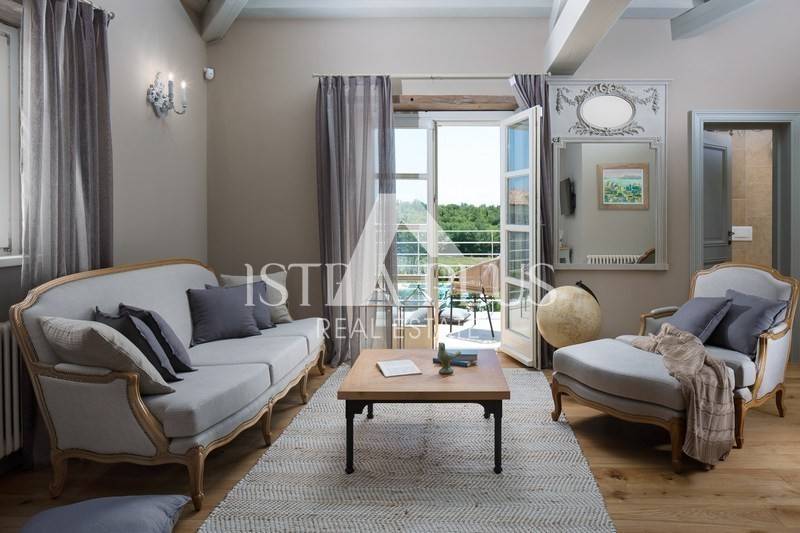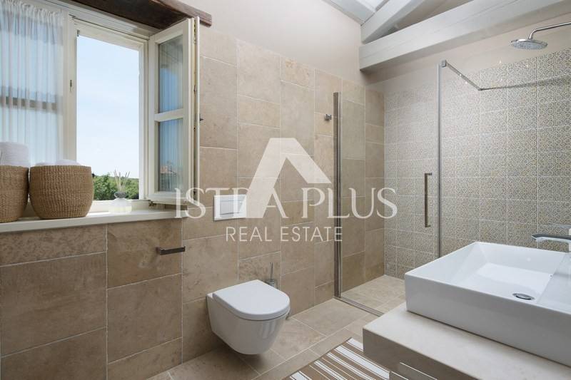 Luxury villa with pool of 359 m2 on two fully air-conditioned floors with a capacity of 8 people. The ground floor has a spacious living room with fireplace and SAT-TV and access to a spacious covered terrace with dining table, fireplace for barbecue and lounge area, large, fully equipped kitchen with dining area, one double room with double bed, private shower. Toilet and exit to the terrace, separate toilet in the living room and shower / WC on the terrace.