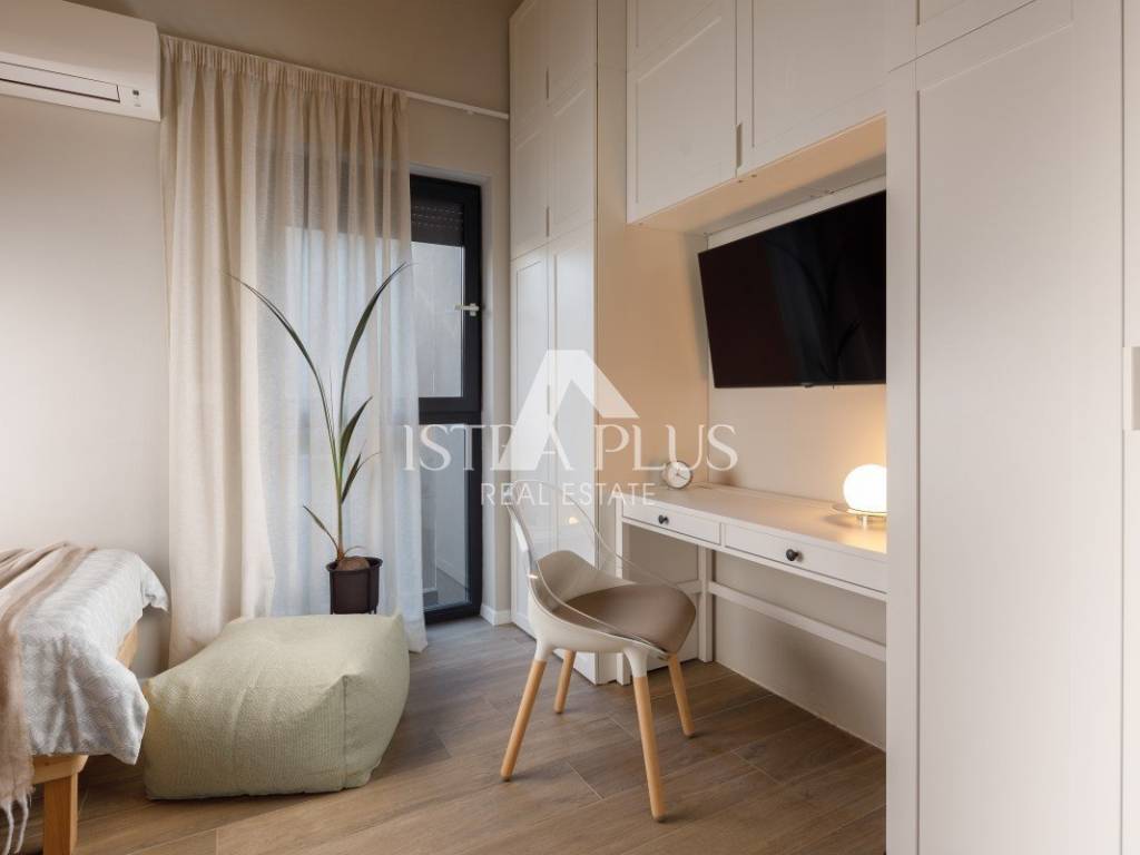 On the ground floor storage room, living room, kitchen and dining room exit to the yard and toilet. On the first floor of the house will be located two bedrooms with one bathroom, hallway. Terraced houses are an example of modern residential construction. Ten terraced houses, five on each side. They also allow a high level of privacy with a warm sense of neighborhood. Each house has a garden and parking space, and six houses have sea views. The nearest beach is 950 m away, and the center of Porec 2 km. Each house consists of two floors and has an average of 65 square meters, with more or less square footage, depending on the location of the house. The size of the garden varies from 42 m 2 to 104 m 2, and the space is fenced. The interior is organized in such a way that the unique space of the kitchen, dining room and living room on the ground floor, with access to the terrace, while the upper floor rooms. The larger bathroom is upstairs and the toilet is on the ground floor. Each house has one parking space with the possibility of adding more parking spaces. Special attention is paid to the organization and arrangement of the interior to make the stay in the house as pleasant as possible. The emphasis is on natural light, which is abundant thanks to the large glass surfaces. The modern style of decoration with daylight and the use of natural colors contribute to the ambience radiating optimism and comfort. The ground floor is a fluid room with an extension of the garden, and is designed as a central place for daily activities. Upstairs are the bedrooms, and the vertically separated gallery space of one of the rooms will be a favorite creative haven - for both adults and children. Proven combination of comfort, safety and functionality makes these houses the living spaces of the future. The location of the property achieves an ideal balance between a quiet environment and proximity to all desired facilities such as city center and beaches. outstanding quality of life.