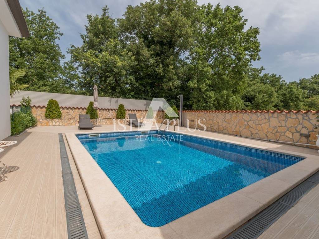 Za hišo pa vrt krasi čudovit bazen s prostorom za sončenje. Spodaj je dodatna hiša s pomožnimi prostori. Dvorišče je obdano z zidom in ima svoj mir in zasebnost.