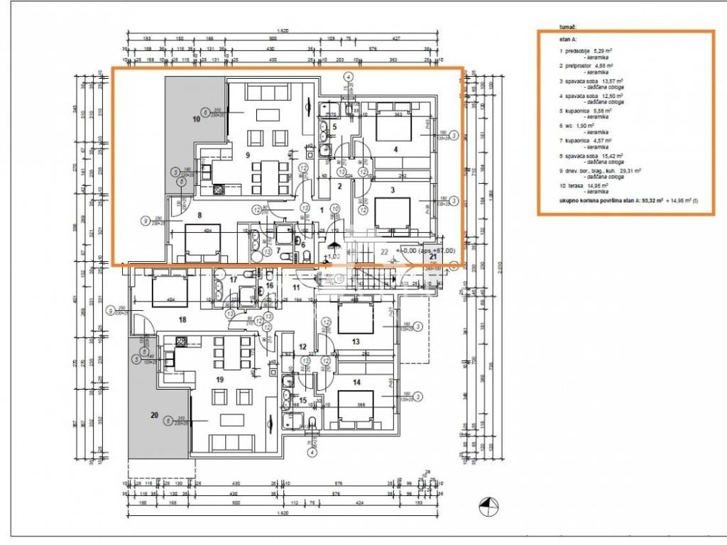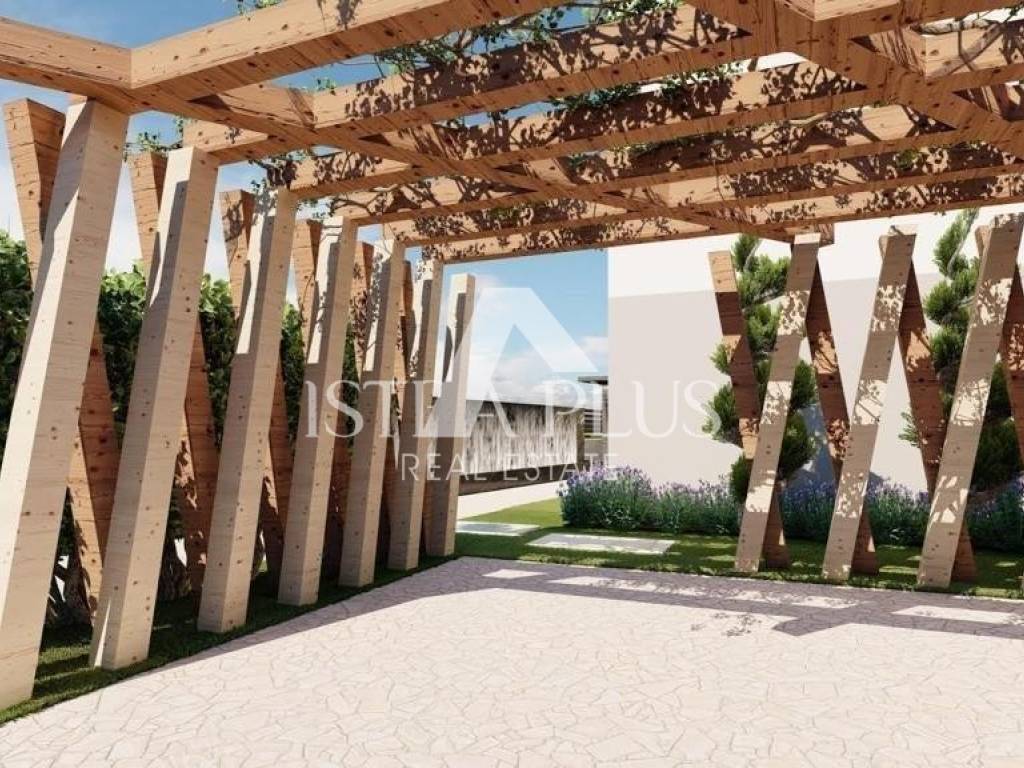 S62 - Flat A Luxury apartment in the vicinity of Poreč. The apartment is located on the ground floor with a total area of 93.32 m2 and consists of an entrance hall, a master bedroom with its own bathroom, 2 bedrooms that share one bathroom, a living room with a dining room and an open space kitchen, from which there is access to a covered terrace (14 ,95 m2), and sunbeds with their own pool. The apartment also has a storage room/engine room in the basement. The building is built of quality materials. The carpentry is aluminum, three-layer thermopane glass, with electric blinds. Heating and cooling is provided by multi-splt inverter air conditioners. Each apartment has two covered parking spaces.
