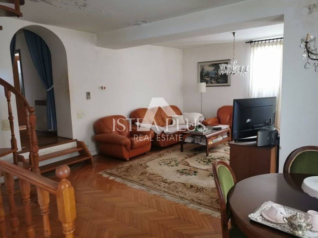 K142 House in a row consisting of ground floor, first floor and attic. The house needs adaptation. On the ground floor there is a large living room with a fireplace. Internal stairs lead to the first floor, which consists of a kitchen with a dining room, a living room, a bathroom, two terraces and three bedrooms. In the attic there are two more bedrooms, a bathroom, a kitchen and a roof terrace. The house is located 5 km from the sea.