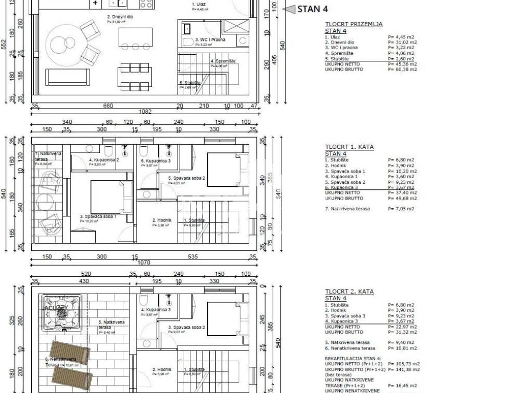 On the ground floor there is a dining room, kitchen and living room according to the open space concept with access to the terrace and yard 30 m2, guest toilet with laundry room, storage room.