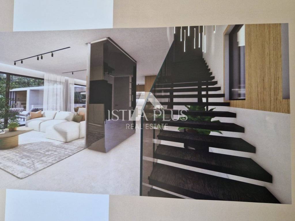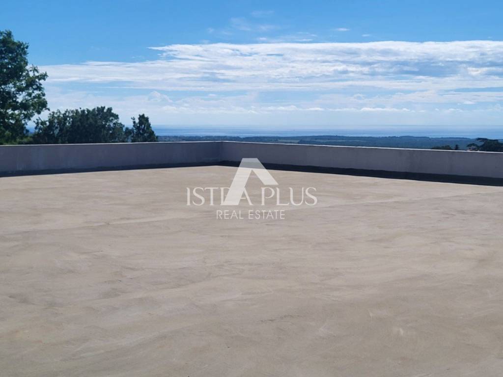 From the 1st floor, the external stairs lead to the roof terrace, where there will be a jacuzzi, a sunbathing area and an area for socializing and relaxing with a panoramic view of the Istrian landscape and the sea.