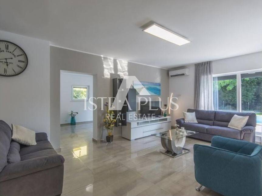 Villa with pool, total living area 230 m2, 400m to the sea and 1km from the center of Poreč. It is located on a plot of land of 693 m2 and is spread over 2 floors.
