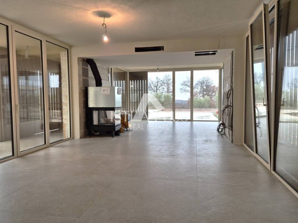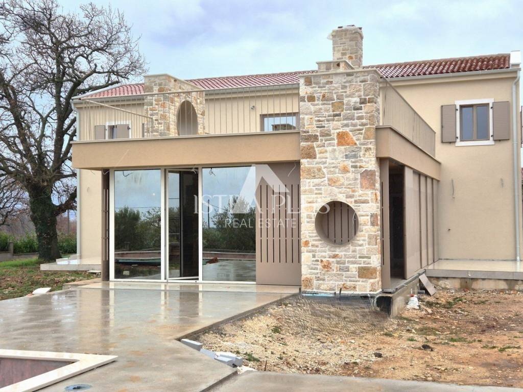 In a peaceful Istrian setting, in a small authentic village surrounded by olive groves and vineyards, is located this new, modern and designer villa that offers the perfect combination of privacy, comfort and luxury. The property stands out for its elegant architecture, top-quality workmanship and views of the sea and the landscape.