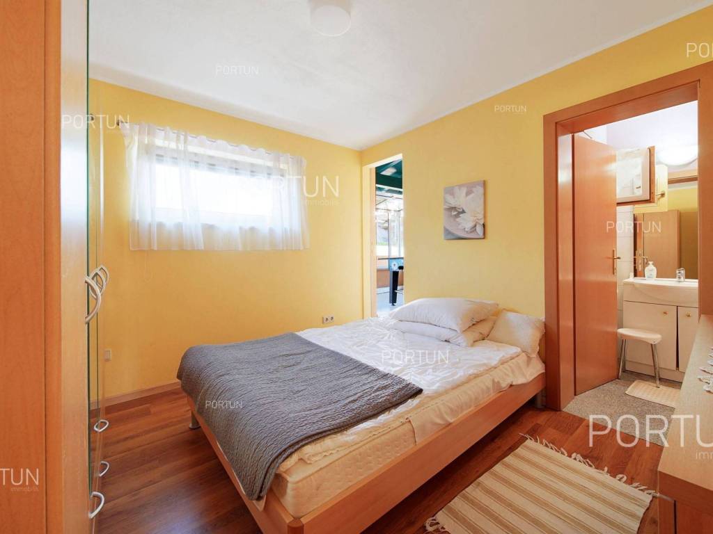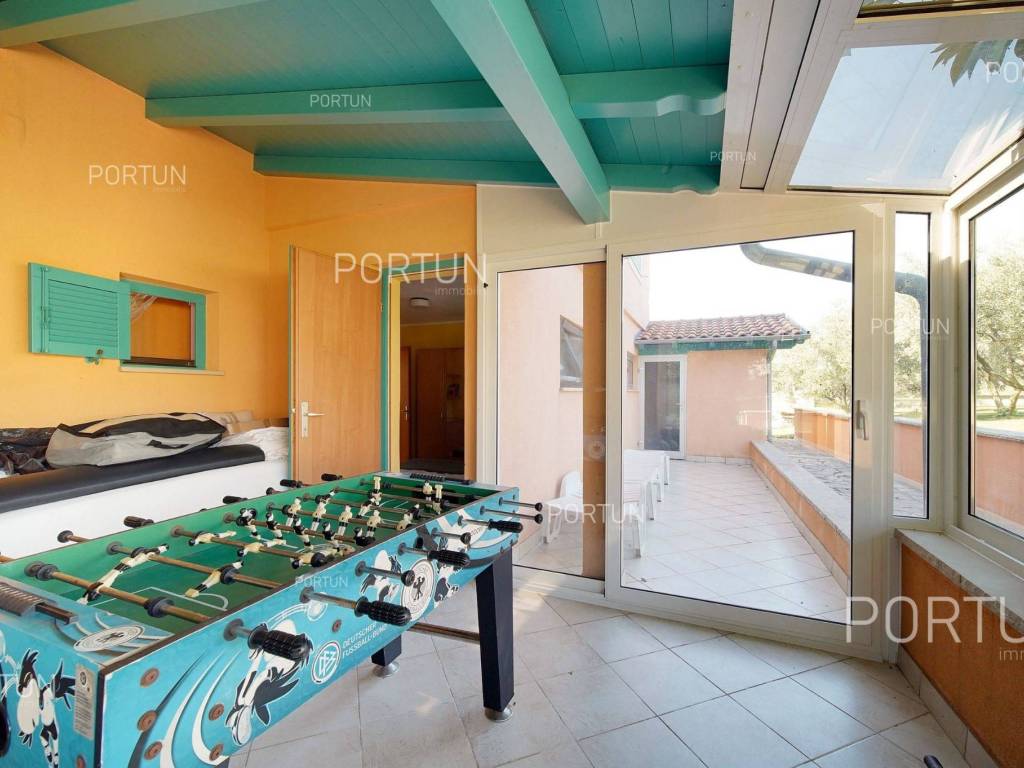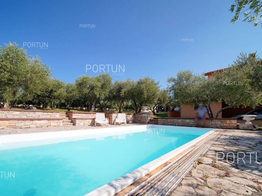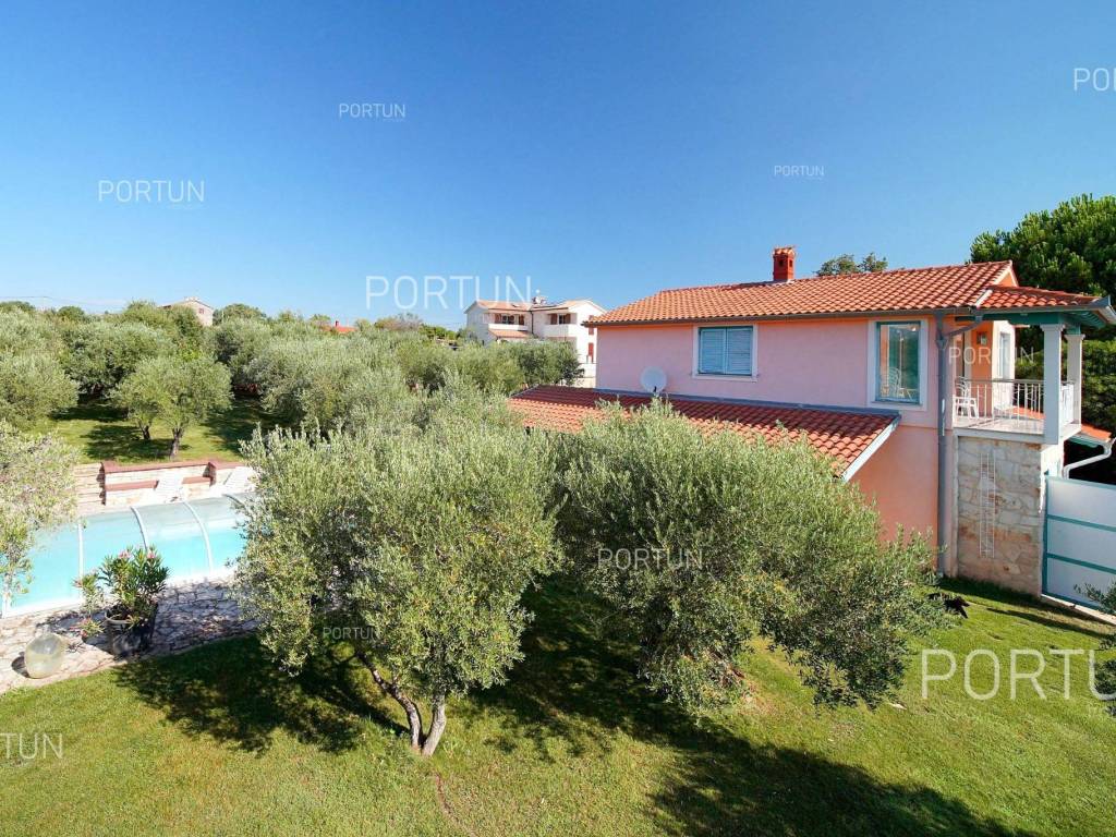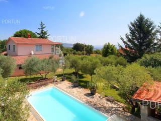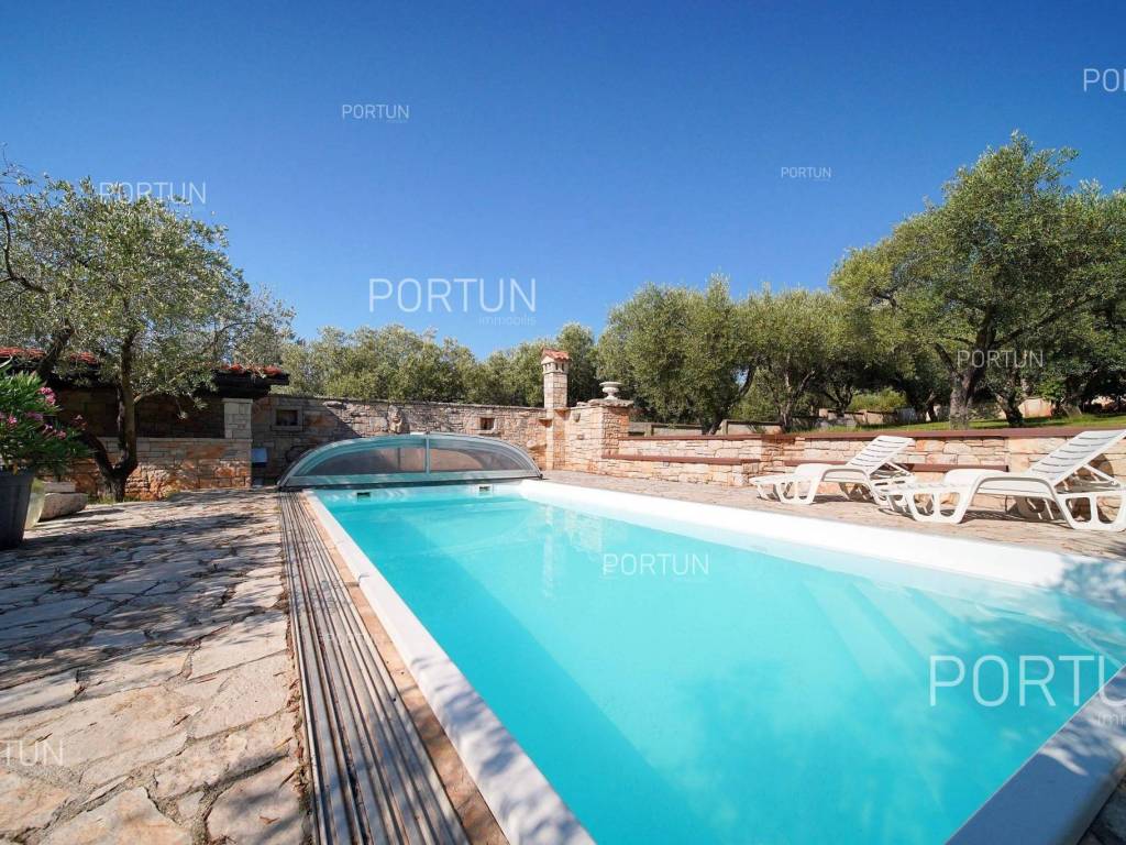 Surrounded by a quiet neighborhood, this house stands out with a lush garden, an olive grove with about twenty old olive trees and a swimming pool with a retractable roof. On the ground floor of the house there are two apartments, each with one bedroom, and additional facilities such as a laundry room, two storage rooms, a garage and a covered parking space. On the first floor there is a spacious owner's apartment with two bedrooms and a large covered terrace offering panoramic views of the Kvarner Bay. The garden is a true green oasis with luxurious oleanders and old olive trees, among which there is a swimming pool. Right next to the pool is a dug-in wine cellar, perfect for storing wine or socializing in an intimate setting. The proximity to the beach, beautiful sea views, a lush garden, a covered pool and a wine cellar make this property an ideal choice for a long-term tourist season and a quick return on investment. The house is fully legal and ready for categorization, making it suitable for tourist rental. For more information, feel free to contact us!. LocationIstria - a heart-shaped peninsula immersed deep in the clear and blue waters of the Adriatic, is a hidden garden of beauty that opens the door to the sunny and warm Mediterranean. Marčana is located on a plateau above the coast in the southeast of Istria, in the embrace of untouched nature with a crystal clear sea and lush greenery in the hinterland. Completely peaceful, rural location on the east coast of Istria, not far from Marčana, where the house is positioned, offers numerous amenities:Sea | Beach 1,4 km Services | Food store 1,5 km - Cafe or bar 1,5 km - Inn or restaurant 5,5 km - Elementary School 5 km Sports and fun | Basketball court 5 km - Nature park Kamenjak 32 km Nearby towns | Barban 18 km - Pula 18 km Traffic | Highway entry Pula 16 km - Pula Airport 17 km Attractions | Outdoor museum Kažun Park 18 km About the propertyThe estate which extends to 2.000 square meters comprises: Main house | 4 Bedrooms - 4 Bathrooms - 2 Floors - 237,38 m2Auxiliary building | 1 Floor - 16,33 m2Swimming pool | 30,00 m2LayoutThe spacious house, with 237 square meters, is spread over two floors, namely the ground floor and the 1st floor. Ground floor | The entrance to the house is on the ground floor. This 159,08 m2 floor includes two apartments, a garage 40,00 m2, a laundry, 2x storage space and a canopy. First floor | External straight stairs lead to the upper level, that is to the 1st floor. This 78,30 m2 level features a two-bedroom flat, a terrace 8,00 m2, a covered terrace 12,44 m2 and a corridor. Parking spaces Parking for two cars Garage 40,00 m2About the houseThe entrance to the house is on the ground floor level, from the southeast side, and vertical communication takes place via the external staircase. The basic architectural characteristics of this completely unique house are: Floors | Ground floor + First floor Orientation | Southeast External walls | Block brick wall 20 cm Concrete slab floors Roof | Pitched roof covered with clay tiles Built approx. in 1980 Renovated 1995FurnitureFurniture | All furniture is included in the priceJoinery | Wooden joinery with double glazing - PVC joinery with double glazing - Aluminum shutters - Wooden shutters - Wooden entry door - Classic interior doorsHeating and cooling | Air conditioners (2) - Furnaces - wood (2)Flooring | Ceramic tiles - Laminate flooringOutdoor spaceEquipment | Automatic irrigation - Drip irrigationGreen areas - 20 Old olive trees - Cedar tree - Row of vinesFences | A stone wall - Concrete wallDriveway | Motor drive - Slide openingOutdoor pool Skimmer pool 30,00 m2 | Composite pool - Disinfection of water with chlorine - Pool cover Sunbathing area | Deckchairs Services Connection to the power grid Connection to the water supply network Septic tank Unpaved public access road | Distance to the paved road approx. in 200 mReal estate statusThe land is located entirely within the boundaries of the construction area. DocumentationExtracted documents | Decision on the constructed condition of the building - Architectural snapshot of the existing stateArea calculationThe area of the house (237,38 m2) includes the areas of these spaces:Living area (Ground floor + First floor) = 112,66 m2*Terrace (First floor) = 8,00 m2*Covered terrace (First floor) = 12,44 m2*Lodges (Ground floor) = 30,00 m2*Garage (Ground floor) = 54,96 m2*Storage spaces (Ground floor) = 19,32 m2**Area is given without accrued construction coefficientsData source = Architectural snapshot of the existing stateThe total land area including the footprint of the building(s) amounts to 2.000 square meters. Data source = Cadastre data