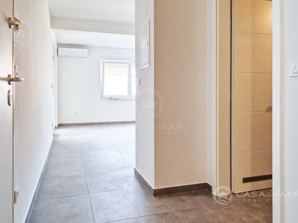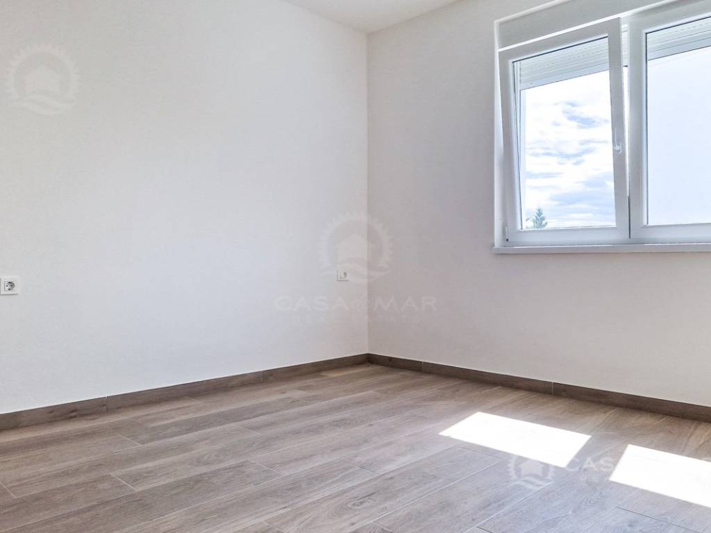 A newly built apartment for sale in Šilo, located just 350 meters from the sea. It is situated on the first floor of the building and consists of a living room with kitchen and dining area, two bedrooms, a bathroom, and a covered terrace.