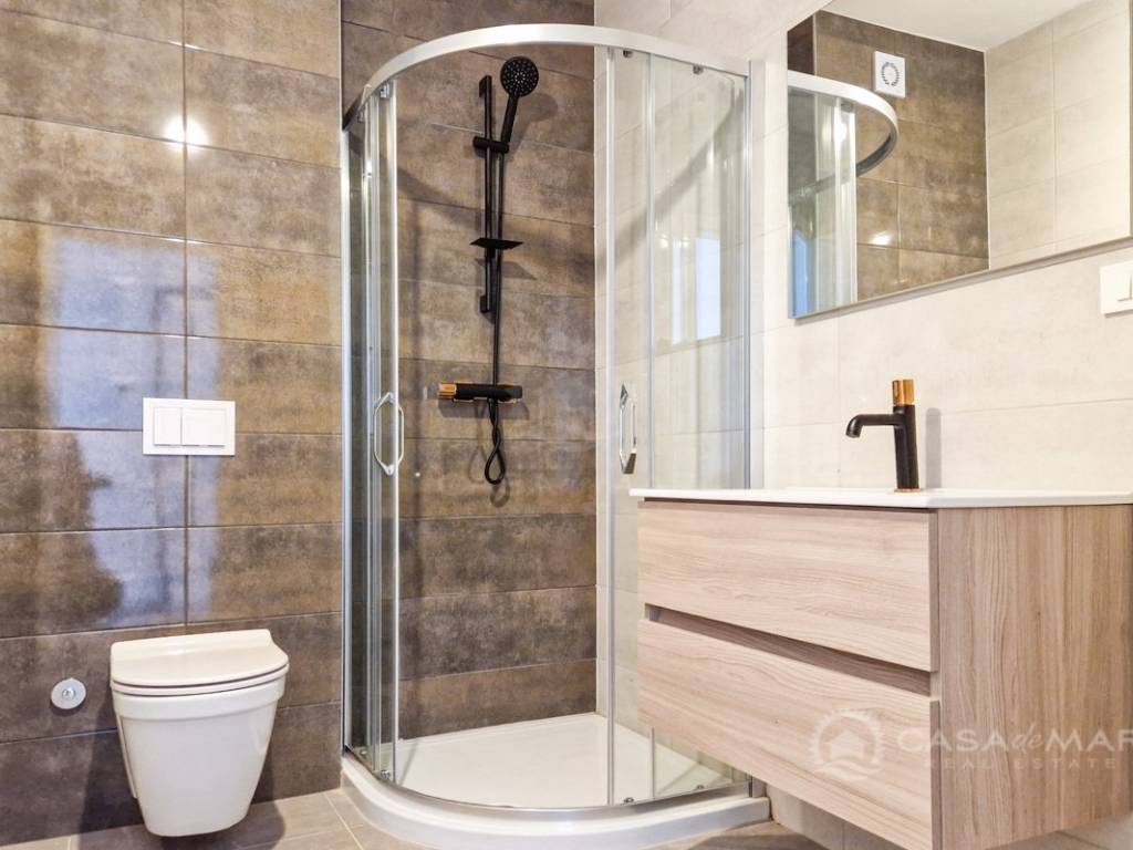 It is being sold unfurnished, air-conditioned and equipped with electric underfloor heating in the bathroom. The property is of high-quality construction, featuring high-grade ceramic tiles, PVC joinery, electric shutters on glass walls, security doors, and a modernly designed bathroom.