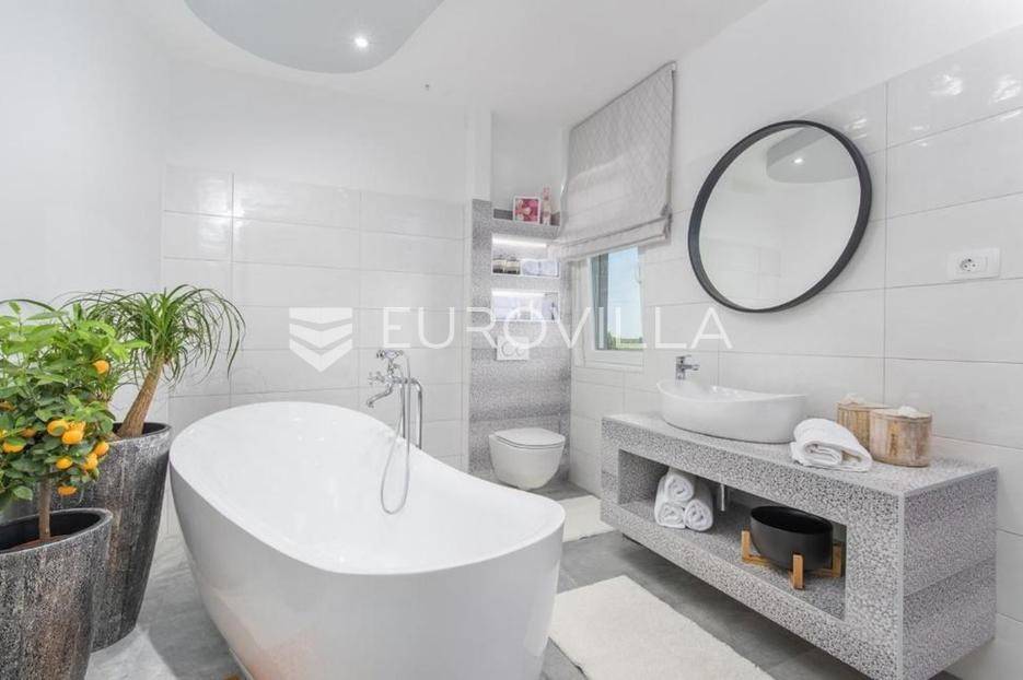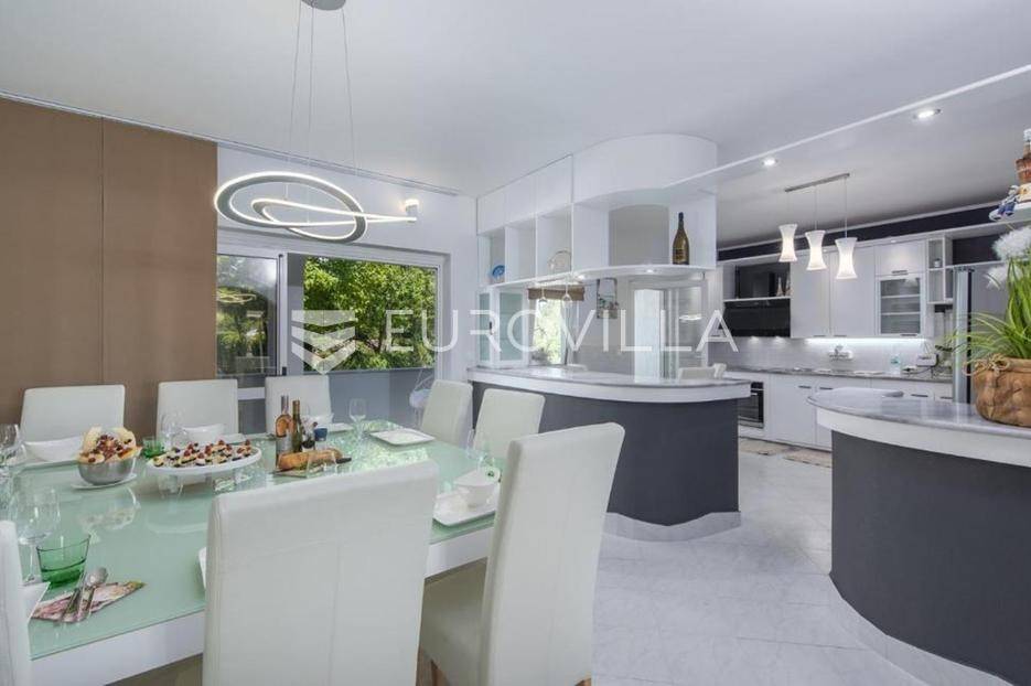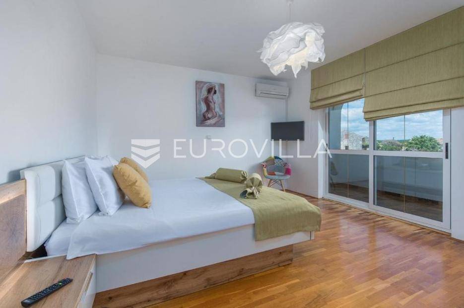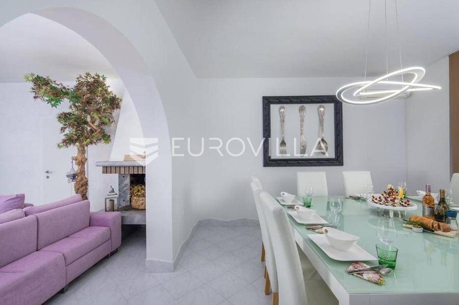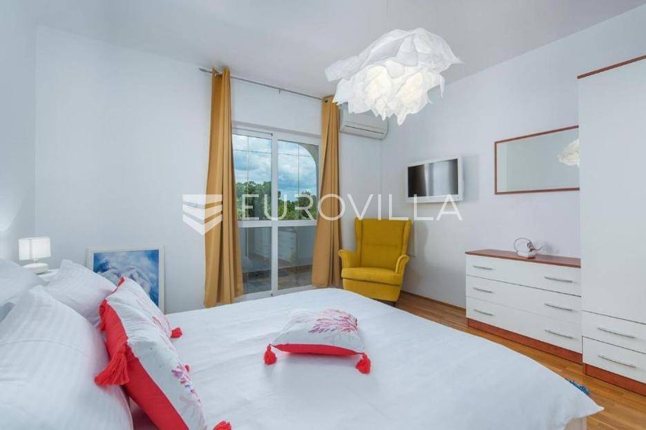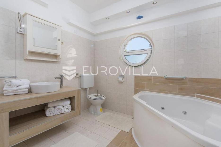 Istra, Sv. Lovreč - prostrana kuća s bazenom, jacuzzijem i prekrasnim pogledomNa prodaju je izuzetna kuća za odmor smještena u mirnom okruženju nedaleko Svetog Lovreča, na samom rubu mjesta, što osigurava potpunu privatnost i mir. Kuća se nalazi na parceli od 312 m², s privatnim ograđenim vrtom površine 230 m².Nekretnina se proteže na tri etaže, s ukupnom neto površinom od 380 m², te nudi mnoštvo sadržaja za ugodan boravak:PrizemljePrivatni, ograđeni vrtBazen 30m2 i jacuzziDvije natkrivene teraseProstrani dnevni boravak s izlazom na terasu povezanu s vrtomKuhinja i blagovaonica s vlastitom terasomSuterenTeretanaSaunaMeđukatSpavaća soba s vlastitom kupaonicomPrvi katTri spavaće sobeTri kupaoniceTerasa s prekrasnim pogledom na prirodu i morePotkrovljeDvije spavaće sobeDvije kupaoniceKuća je dio dvojne cjeline u selu Selina, u blizini Poreča. Opremljena je sa šest klimatiziranih spavaćih soba, šest modernih kupaonica, potpuno opremljenom kuhinjom, blagovaonicom i udobnim dnevnim boravkom. Ograđeni vrt pruža dodatni prostor za boravak na otvorenom, s dječjim igralištem, vrtnom garniturom, ležaljkama i lijepim bazenom idealnim za ljetno osvježenje.Ova kuća predstavlja idealnu priliku za ulaganje u turistički najam ili kao privatno utočište za odmor.Za više informacija i dogovor oko obilaska, slobodno nas kontaktirajte.