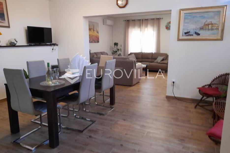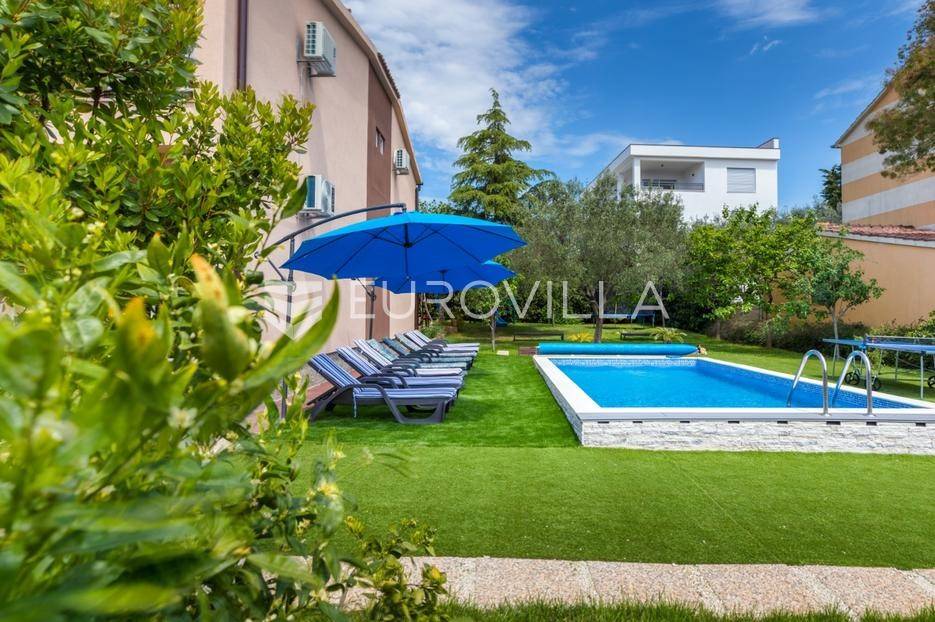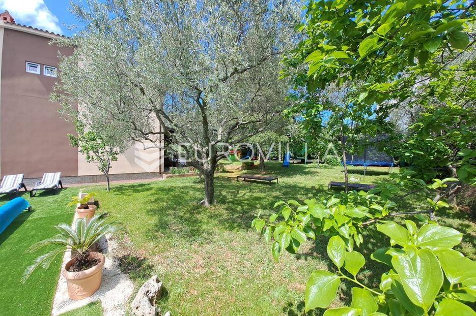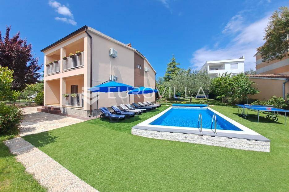 Fažana, lijepa obiteljska kuća za stanovanje i turistički najam stambene površine 200 m², okućnica je uređena te uključuje kamin i veliki bazen od 48 m² , savršen za opuštanje.Lokacija je izuzetno atraktivna, nedaleko od centra Fažane što omogućava mir, a udaljena je samo 600 metara od plaže.Kuća se tijekom godine koristi kao obiteljski dom, dok se u ljetnim mjesecima vrlo uspješno iznajmljuje turistima.U prizemlju opremljenim s 2 klime nam se nalazi prostrani i svijetli dnevni boravak, potpuno opremljena kuhinja, kupaonica, izlaz na terasu i dvorište s bazenom, te garaža u sklopu kuće.Na katu nam se nalaze 4 komforne spavaće sobe, svaka je opremljena klimom i TV-om, 2 spavaće sobe imaju izlaz na terasu. U sklopu kata nam se imamo i 2 kupaonice.Kompletna infrastruktura ( voda, struja, kanalizacija ).Uredno, čisto vlasništvo.Za dodatne informacije stojimo Vam na raspolaganju.
