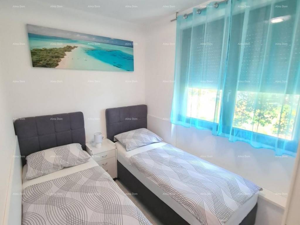 Apartment for Sale in a New Building, Medulin!The apartment is located on the 1st floor of a newly constructed residential building. It consists of a living room with a dining area and kitchen, a terrace, two bedrooms, and a bathroom. The apartment is fully furnished with custom-made furniture and equipped.It features air conditioning for heating/cooling and underfloor electric heating in the bathroom.Private parking is included!For additional information and viewing, please contact:Azra+385 91 611 5706azra@almadominvest.comJelena +385 98 323 264jelena@alma-nekretnine.com