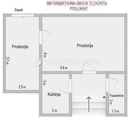 Poslovni prostor sastoji se od dvije prostorije i hodnika u prizemlju te dvije prostorije, kuhinje i kupaonice na polukatu.
