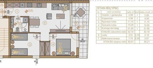 New construction! Three apartments remaining for sale. The building consists of only 10 apartments - 2 entrances (5 apartments per entrance). Available is an apartment on the 2nd floor of the new building, which includes a hallway with a wardrobe, a bathroom, two bedrooms, a kitchen with a dining area, a living room, and a covered terrace. The apartment features the following amenities: - Electric underfloor heating in the bathroom and living area - Electric water heater in the bathroom - Air conditioning (inverter) in the living room - Glass railing on the terrace - Covered parking space The building is in the final stages of completion. Move-in date: March 2026. Co-ownership. The apartment is located near the sandy beach in Medulin. Close to a pharmacy, cafes, and restaurants. The future buyer does not pay property transfer tax. INFO: jelena@alma-nekretnine.com +385 98 323 264 +385 98 420 885