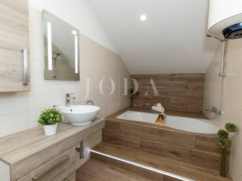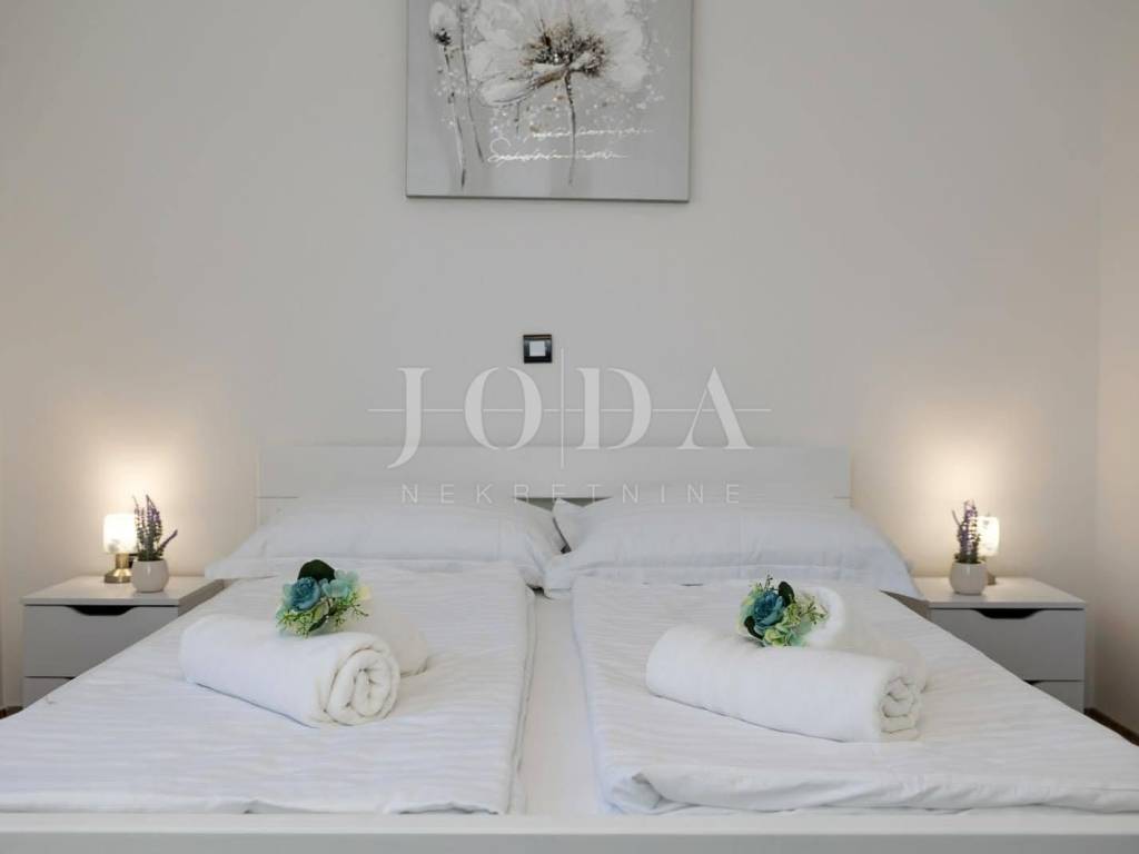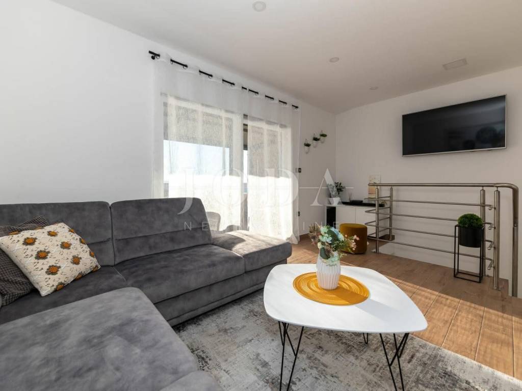 A modern and spacious two-storey apartment for sale, located in a peaceful area of Jadranovo, ideal for buyers seeking comfort, functionality, and an open sea view. The apartment is situated on the second floor of a quality residential building and features two large terraces with panoramic views of the Kvarner Bay. In front of the building there is a green zone, an area without construction, providing additional privacy and tranquillity.