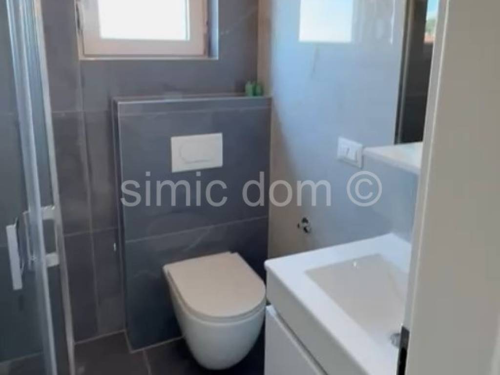 For sale are apartments in a new residential and commercial building in Okrug Gornji on the island of Ciovo. Apartment S1 is placed on the first floor and consists of a hallway, living room with kitchen and dining room leading to a covered terrace, two bedrooms, two bathrooms and a storage room. It has an area of 54.43 m2 of interior space and another 15 m2 of covered terrace. Each apartment also has one parking space. With all the accessories, the net area of the apartment is 64.90 m2. All apartments are well equipped and have air conditioning, first-class aluminium joinery, triple-layered insulated glass with mosquito nets on all windows and balcony doors. Electric shutters, modern tiles in the kitchen and parquet floors in the rooms, excellently equipped bathrooms, burglar and fire-resistant entrance doors, video surveillance and top-quality thermal and hydro insulation. The location of the building is attractive, great also for buyers looking for real estate to live in, since all facilities are nearby, from shops to restaurants, schools, kindergartens, churches, and the sea is only a few minutes' walk away.