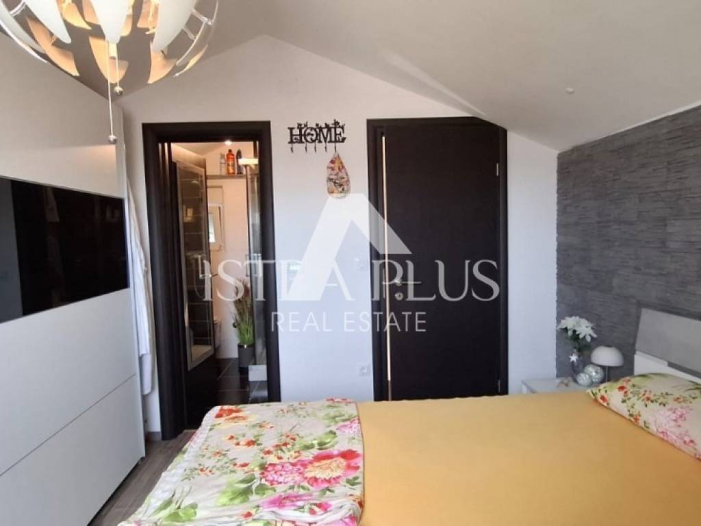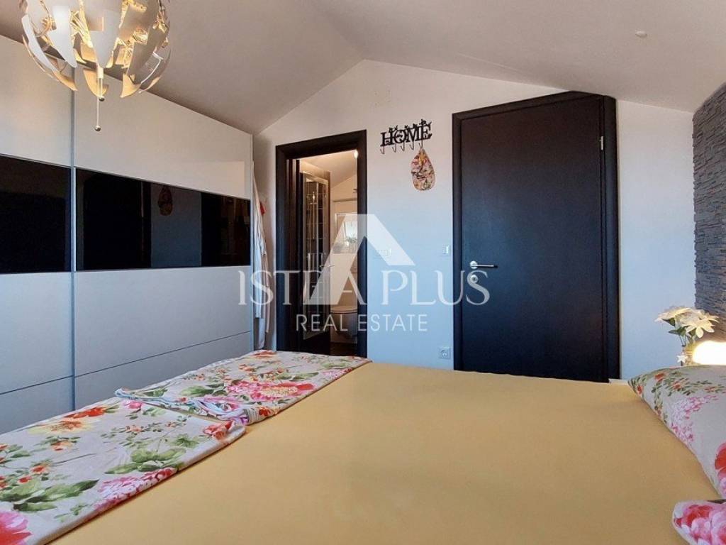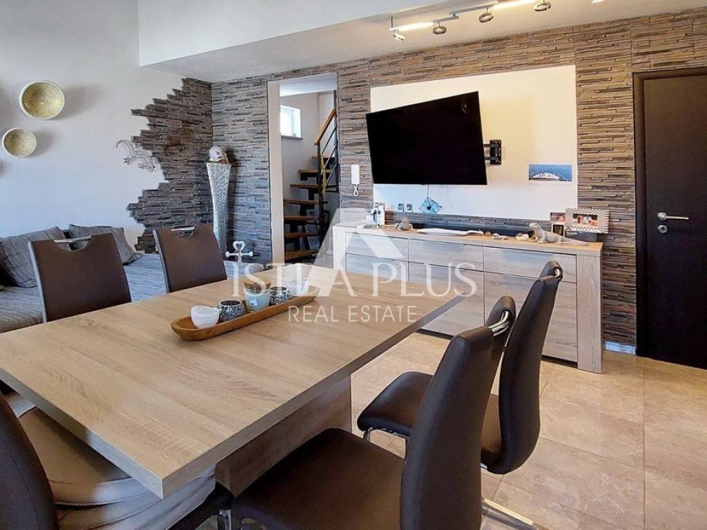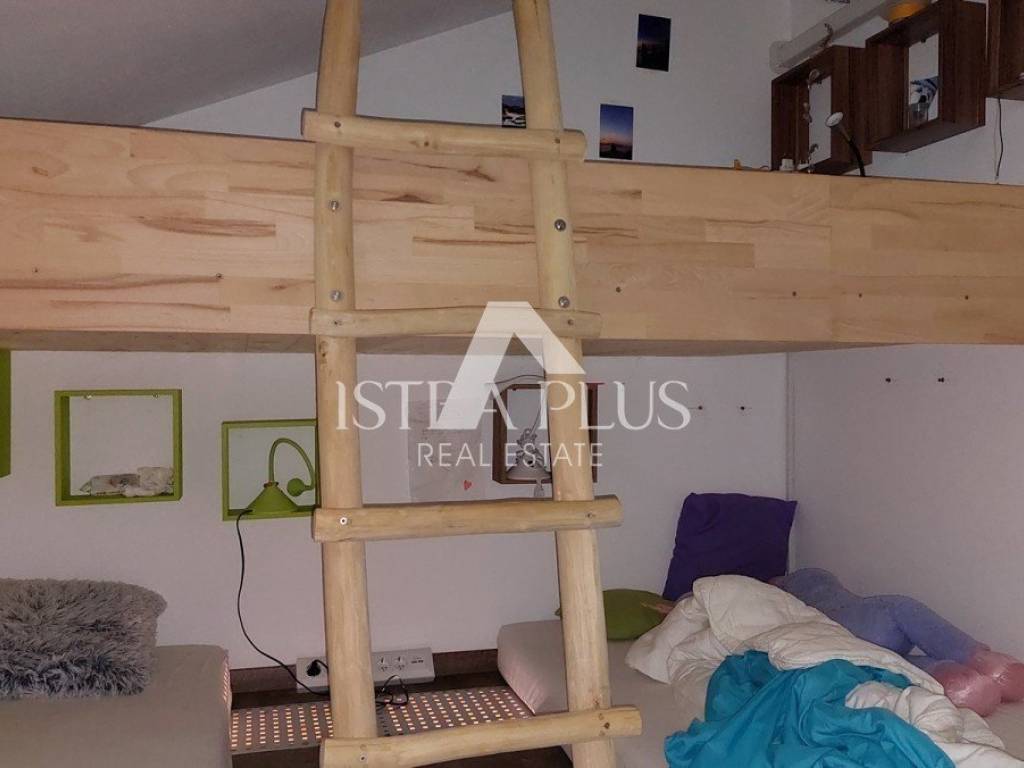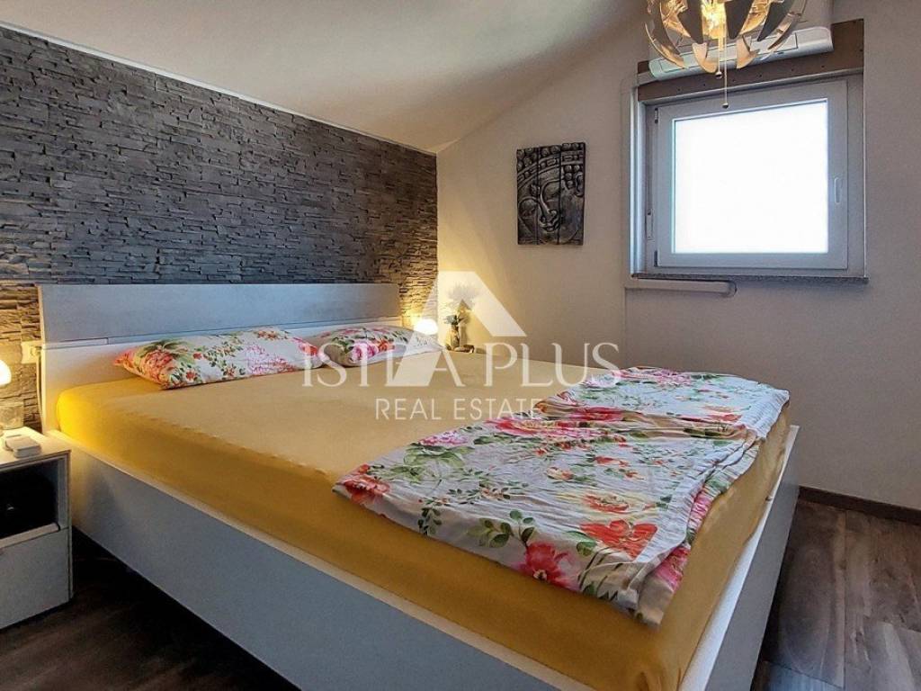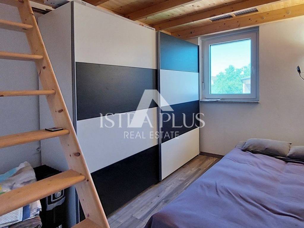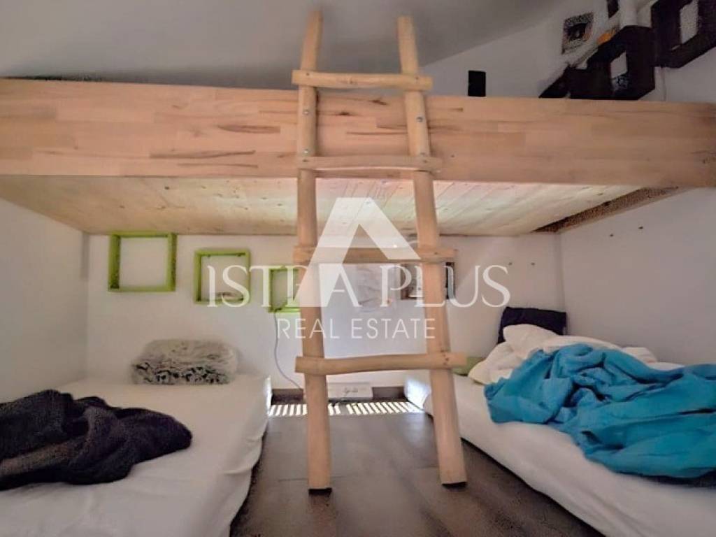 S311We offer a beautiful apartment in Funtana, a charming Istrian town right by the sea and beautiful beaches. The apartment is located on the first floor and spreads over two floors, with a total area of 75.70 m. Layout: The lower floor consists of a hallway, bathroom Bedroom with a gallery - an ideal corner for children, additional sleeping space or a playroom Spacious, bright living room connected to the kitchen and dining room, exit to a large covered terrace with a dining table Practically located storage/pantry next to the kitchen On the upper floor there is a large bedroom with its own bathroom Yard and additional facilities: A part of the yard where there is a Garden house/tool shed and storage for additional things -Possibility of arranging the space as a grill area, a garden for relaxation or according to your own wishes A parking space in the yard belongs to the apartment. The apartment is fully air-conditioned (heating and cooling), is being sold furnished and is ready to move in immediately! Excellent opportunity