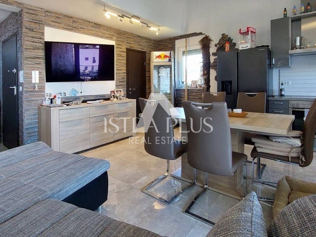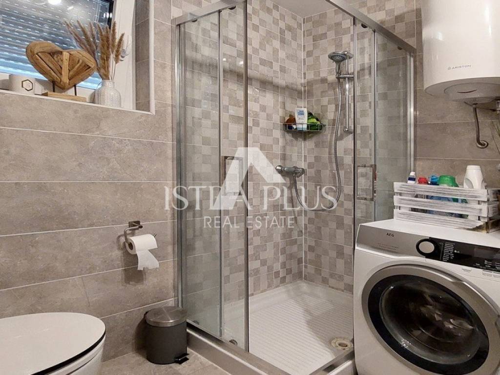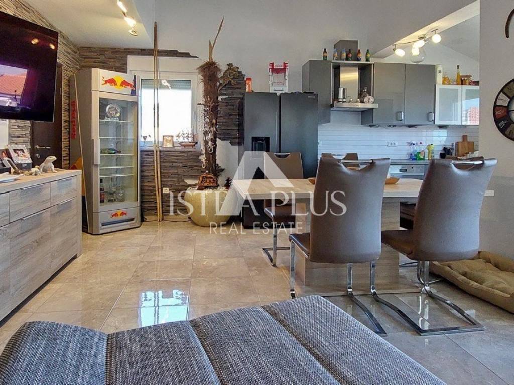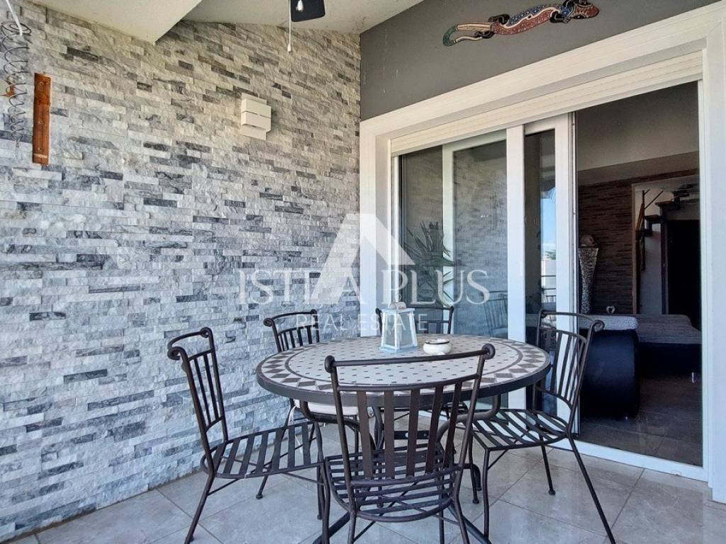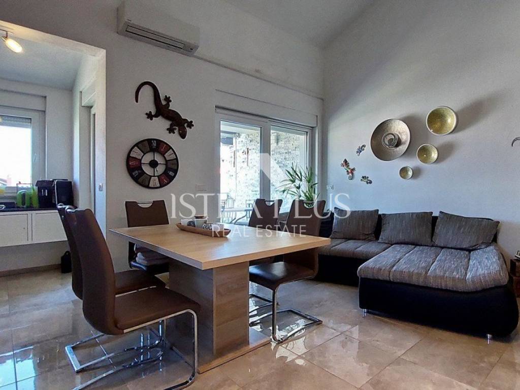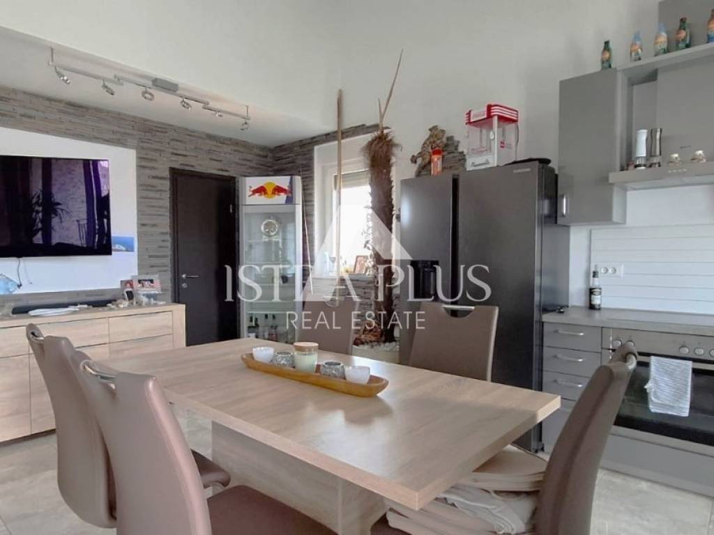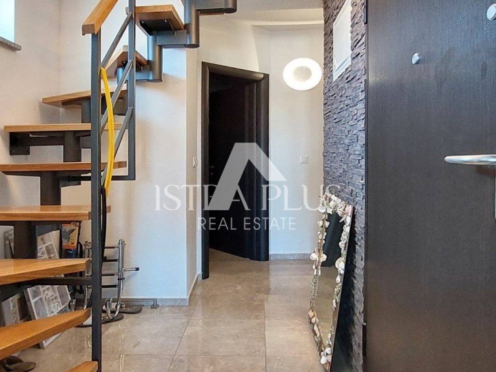 S311We offer a beautiful apartment in Funtana, a charming Istrian town right by the sea and beautiful beaches. The apartment is located on the first floor and spreads over two floors, with a total area of 75.70 m. Layout: The lower floor consists of a hallway, bathroom Bedroom with a gallery - an ideal corner for children, additional sleeping space or a playroom Spacious, bright living room connected to the kitchen and dining room, exit to a large covered terrace with a dining table Practically located storage/pantry next to the kitchen On the upper floor there is a large bedroom with its own bathroom Yard and additional facilities: A part of the yard where there is a Garden house/tool shed and storage for additional things -Possibility of arranging the space as a grill area, a garden for relaxation or according to your own wishes A parking space in the yard belongs to the apartment. The apartment is fully air-conditioned (heating and cooling), is being sold furnished and is ready to move in immediately! Excellent opportunity