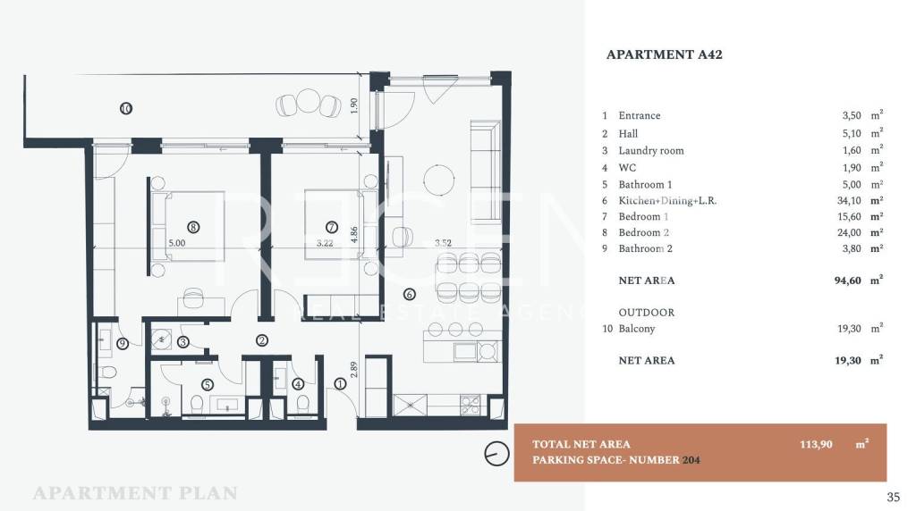 Au cœur de l'Europe méditerranéenne, dans le micro-emplacement d'Alberi, juste au bord de la mer, à Savudrija, dans un complexe moderne avec une touche de luxe qui offre détente et repos, se trouve un appartement moderne de trois pièces au 3ème étage de 113,90 m2. Il se compose de : un couloir, deux chambres luxueuses, 2 salles de bain, un salon spacieux avec salle à manger et cuisine, des toilettes, une buanderie/une laverie et un balcon ainsi qu'une place de parking. Les appartements sont modernes et ouverts avec vue, avec la juste dose de luxe et d'intimité qui vous permettra de profiter sans entrave de toutes les occasions. Des normes de construction élevées garantissent une intimité maximale et des vacances reposantes pour vous et votre entourage, même si vos invités sont un peu bruyants. Pour chaque appartement, vous pouvez choisir un forfait d'aménagement intérieur qui correspond à votre style et à vos préférences. Vous pouvez également opter pour un forfait d'entretien. Tous nos appartements incluent l'utilisation impeccable et prioritaire de tous les services proposés par le resort. Le prix comprend une place de parking, la TVA n'est pas incluse. Le prix comprend un appartement entièrement équipé avec une place de parking.
