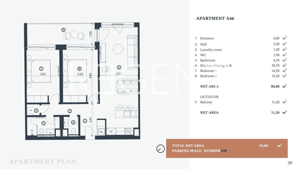 Au cœur de l'Europe méditerranéenne, dans le micro-emplacement d'Alberi juste à côté de la mer, à Savudrija dans un complexe moderne avec une touche de luxe qui offre détente et repos, se trouve un appartement moderne de trois pièces au 3ème étage de 92,00 m2. Il se compose de : un couloir, deux chambres luxueuses, une salle de bains, un salon spacieux avec salle à manger et cuisine, des toilettes, une buanderie/buanderie et un balcon et une place de parking. Les appartements et appartements sont modernes et ouverts avec vue, avec la bonne dose de luxe et d'intimité qui vous permettra de profiter de toutes les occasions sans être dérangé. Des normes de construction élevées assurent une intimité maximale et des vacances sans interruption pour vous et tous ceux qui vous entourent, même si vos invités sont un peu bruyants. Pour chaque appartement, vous pouvez choisir un ensemble de décoration intérieure qui correspond à votre style et à vos préférences. Vous pouvez également opter pour un forfait de maintenance. Tous nos appartements comprennent une utilisation impeccable et prioritaire de tous les services offerts par le complexe. Le prix comprend une place de parking, la TVA n'est pas incluse. Le prix comprend un appartement entièrement équipé avec une place de parking.