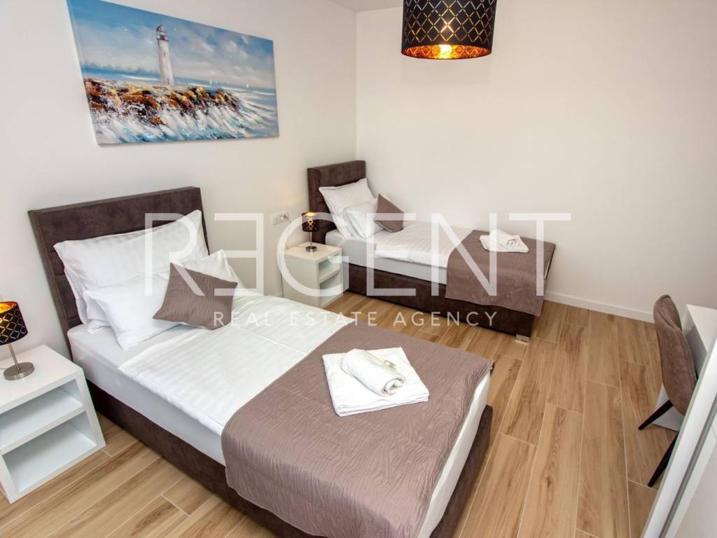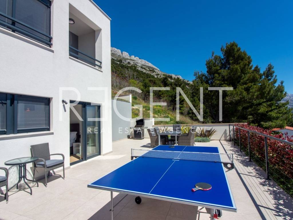 Située dans un endroit attrayant près d'Omiš, une villa individuelle moderne de construction récente est à vendre, avec une surface habitable totale de 262 m². Située sur un terrain de la même superficie, la villa se distingue par son architecture moderne, ses équipements haut de gamme et sa vue panoramique dégagée sur la mer et les îles. Elle s'étend sur deux étages et est entièrement équipée et meublée. Elle se compose de cinq chambres, de quatre salles de bains privatives, de toilettes supplémentaires avec lave-linge et sèche-linge, d'un salon spacieux, d'une cuisine moderne et d'une salle à manger dans un concept d'espace ouvert. Le salon donne sur une grande terrasse avec une piscine à débordement chauffée et une vue spectaculaire. À l'extérieur, il y a également une terrasse couverte avec un barbecue et une cuisine d'été, ainsi que des installations de loisirs telles que le tennis de table et le football. Plusieurs places de parking et un garage sont disponibles. Grâce à son efficacité énergétique, à sa construction de qualité et à son emplacement exceptionnel, cette villa représente une excellente opportunité de logement de luxe ou d'investissement dans le tourisme. Pour plus d'informations et pour une visite, n'hésitez pas à nous contacter !