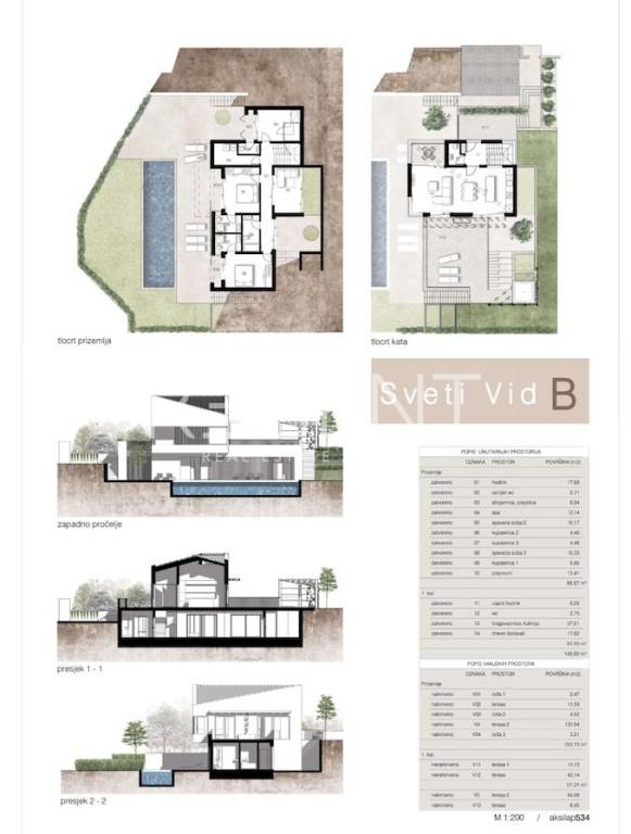 Île de Krk, Malinska – Villa de luxe avec une vue imprenable sur la mer, dans un complexe exclusif Sur l'île de Krk, dans le quartier calme de Malinska, se trouve une villa de luxe d'une superficie brute totale de 195 m², à seulement 1 km de la mer. La Villa II fait partie d'un complexe unique et s'étend sur deux étages, construite sur un terrain de 623 m², offrant une combinaison idéale de design moderne, de fonctionnalité et d'intimité. Rez-de-chaussée : – Deux chambres principales luxueusement équipées avec salles de bains privatives et accès direct à la terrasse. – Un espace de détente et de loisirs comprenant une salle de sport, une salle de jeux pour enfants et un espace spa avec sauna finlandais et coin de relaxation. – Équipements supplémentaires : WC extérieur, salle de bains, salle des machines et buanderie. Dernier étage : – Concept ouvert de cuisine, salle à manger et salon avec de grandes baies vitrées offrant une vue imprenable sur la baie de Kvarner. – WC supplémentaires et deux terrasses couvertes, dont la plus grande (43,14 m²) possède un escalier extérieur menant à la piscine au rez-de-chaussée. Extérieur impressionnant : Le jardin de la villa a été soigneusement aménagé pour offrir un maximum de plaisir en plein air. Il comprend une piscine de 37 m² avec solarium, une terrasse spacieuse avec coin barbecue et suffisamment d'espace pour socialiser et se détendre au soleil. Partie d'un complexe exclusif La villa est située dans un complexe fermé qui comprend cinq maisons de luxe, et les propriétaires ont à leur disposition des installations communes : – Terrain de tennis – Terrain de basket – Terrain de mini-golf – Salle de sport en plein air, – Parc pour enfants – Terrain de pétanque Informations Complémentaires: – Nombre d'étages : 2 - Nombre de salles de bains : 3 – Nombre de toilettes : 2 – Places de parking extérieures : 4 non couvertes – Orientation : sud – Objet : résidentiel – Certificat énergétique : en préparation – Toiture : tuiles – Sols : dalle en béton, revêtements de sol en céramique – Menuiserie extérieure : PVC avec vitrage triple – Équipements supplémentaires : piscine extérieure, terrasse, barbecue, débarras – Technologie : téléphone, Internet par fibre optique, vidéosurveillance, système d'alarme – Documentation : permis de construire et titre de propriété La villa est située à seulement 1 000 mètres de la mer, idéalement située pour profiter de la paix et de l'intimité, tout en permettant un accès rapide à toutes les commodités nécessaires à un style de vie luxueux. Cette villa représente un investissement idéal pour des vacances ou une maison familiale, offrant une combinaison de sophistication, de confort et de beauté naturelle de l'île de Krk.