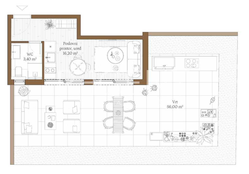 Au rez-de-chaussée d'un nouveau bâtiment à Kaštel Lukšić, un espace commercial de 33,60 m² est disponible avec un jardin attenant de 56 m². L'espace est adapté aux activités qui nécessitent un emplacement calme et un espace extérieur supplémentaire pour le travail ou les clients, mais aussi comme investissement touristique potentiel avec la possibilité de le transformer en appartement ou en un hébergement similaire. La partie intérieure se compose d'un espace de bureau de 16,20 m² et de sanitaires (WC) de 3,40 m². Le jardin offre la possibilité d'organiser des séances en plein air, des présentations, des ateliers ou du contenu destiné aux clients et aux touristes. Situé entre Kaštel Lukšić et Kaštel Kambelovac, l'espace est situé au rez-de-chaussée d'un immeuble résidentiel moderne dans un quartier calme de la ville. À proximité se trouvent des locataires au sein du projet, ce qui assure des utilisateurs potentiels des services, ainsi que la proximité de la route principale, des commerces, des écoles et des jardins d'enfants. Le début de la construction est prévu pour septembre 2025. L'achèvement des travaux est prévu d'ici la fin de 2026, et l'installation sera possible après l'obtention du permis d'utilisation. Le paiement peut être convenu par étapes, en fonction de l'avancement de la construction. Pour plus d'informations et pour une visite, n'hésitez pas à nous contacter.