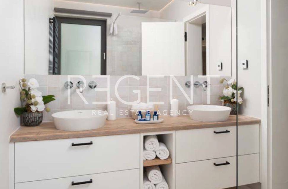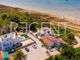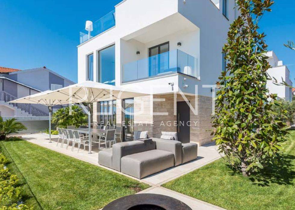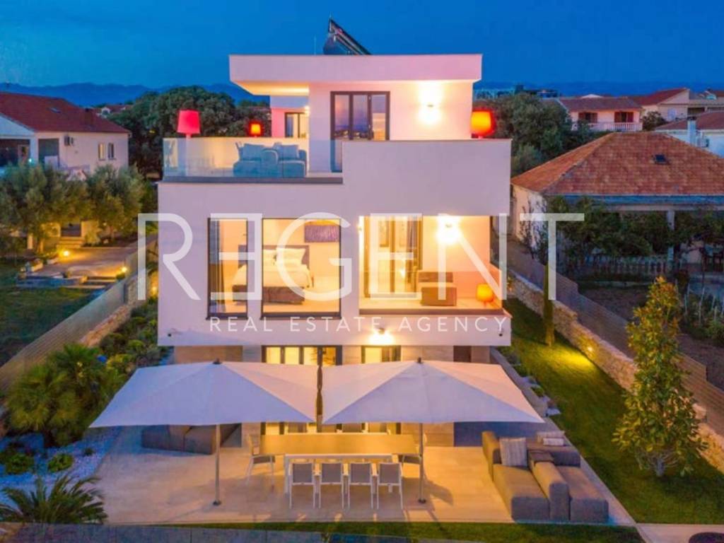 Villa exclusive située en bord de plage à Vrsi, dans un excellent emplacement en Dalmatie du Nord. La propriété se compose de deux bâtiments modernes et est idéale pour les familles ou les amis qui souhaitent luxe et intimité au bord de la mer. Description détaillée de la propriété La villa d'une superficie totale de 370 m² est répartie sur trois étages et comprend cinq chambres, chacune avec sa propre salle de bain. Le salon spacieux est relié à la cuisine et à la salle à manger et donne sur les terrasses et la piscine. Elle est équipée de chauffage au sol, climatisation, sauna, jacuzzi sur le toit, système multimédia haut de gamme et système de vidéosurveillance. Les revêtements de sol en pierre naturelle et les sanitaires haut de gamme assurent élégance et confort, et les terrasses spacieuses offrent une vue panoramique sur la mer. Emplacement La propriété est située à Vrsi, un ancien village de pêcheurs, à seulement 20 km de Zadar et de l'aéroport international. La proximité de la ville historique de Nin, de l'île de Pag et du parc national de Krka fait de cet emplacement la combinaison parfaite de paix, de nature et d'accessibilité. La mer et la plage se trouvent juste devant la villa, et toutes les commodités importantes telles que les magasins, les restaurants et les activités de loisirs sont disponibles à proximité immédiate. Données techniques Le bâtiment a été achevé en août 2020 et est prêt à être emménagé. La superficie totale du terrain est de 806 m², et la villa comprend une piscine de 30 m², quatre places de parking extérieures et un jardin méditerranéen avec irrigation automatique. Le paiement est possible sur accord, avec des conditions flexibles. Appel à l'action Pour plus d'informations ou pour organiser une visite, n'hésitez pas à nous contacter.