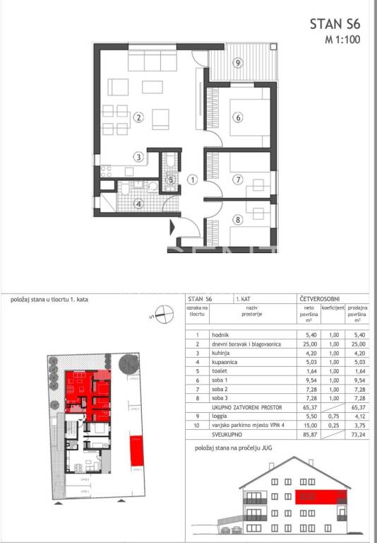 À vendre, appartement de quatre pièces d'une superficie de 69,49 m² à Sesvete, situé au deuxième étage d'un immeuble résidentiel de trois étages, à seulement 20 minutes en voiture du centre de Zagreb. L'appartement a un agencement fonctionnel et est idéal pour la vie quotidienne. Il se compose d'un couloir, d'une salle de bain, de toilettes pour invités, de trois chambres et d'un espace ouvert comprenant une cuisine, une salle à manger et un salon avec accès à une loggia de 4 m2. Possibilité d'acheter une place de parking au prix de 20 000 €. L'emplacement de l'appartement est très pratique, avec des commodités facilement accessibles telles que des commerces, une école, une maternelle et les transports en commun. Pour plus d'informations ou pour organiser une visite, n'hésitez pas à nous contacter !
