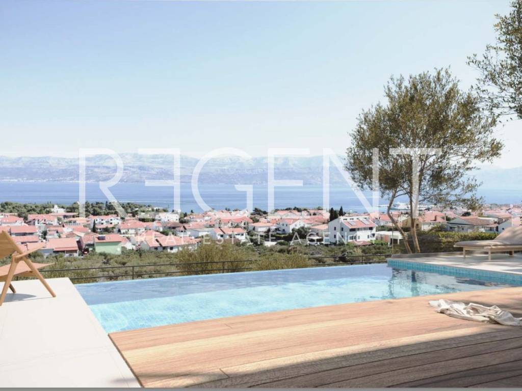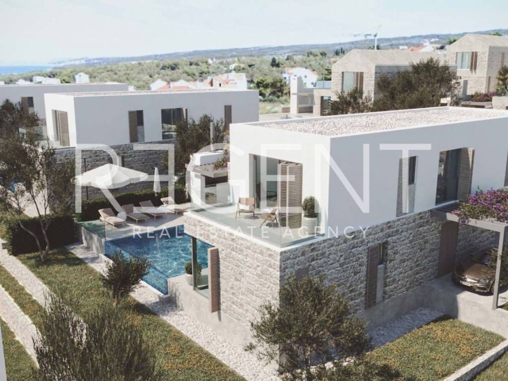 Une villa de luxe avec piscine est située dans un complexe de villas de luxe sur la magnifique île de Brač, à Supetar. C'est un investissement innovant de première qualité. Les résidences pittoresques surplombent la mer Adriatique turquoise. L'emplacement bien choisi offre une combinaison unique de paix et de détente loin de l'agitation de la ville, non loin du centre-ville. Les villas de type A et les villas de type B sont proposées. La villa se compose d'un rez-de-chaussée et d'un premier étage. Rez-de-chaussée : chambre, salle de bain, couloir, cellier, buanderie, WC, escalier, séjour avec salle à manger, cuisine, cellier 2. Premier étage : Chambre, balcon, salle de bain, couloir, chambre avec salle de bain, chambre avec salle de bain, terrasse.La partie extérieure de la villa se compose de : piscine avec solarium, terrasse, local technique de la piscine, cuisine d'été, parking couvert et non couvert, jardin.La villa se caractérise par une combinaison de tendances de construction modernes et de style traditionnel en pierre méditerranéenne. C'est un investissement idéal pour les personnes qui apprécient la nature et la paix en raison de l'emplacement où elles sont construites, mais aussi pour la location touristique en raison de leur praticité, de leur fonctionnalité et de leur esthétique. Chaque villa sera entièrement équipée de pompes à chaleur, de chauffage au sol, et disposera également de piscines et de son propre parking. Toutes les villas seront décorées dans un style moderne jusqu'à la phase de décoration avec des meubles, et l'acheteur pourra choisir les détails selon ses propres souhaits. Le design extérieur est orné de pierres autochtones de Brač qui donnent à cette histoire luxueuse une touche de tradition et de Méditerranée.