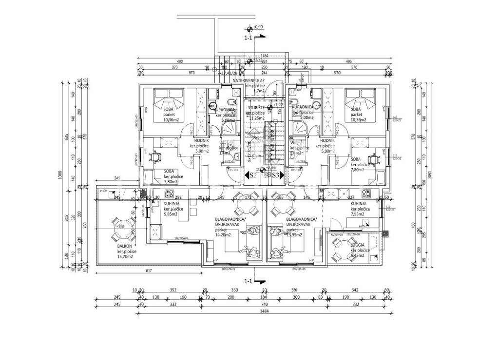 L'appartement S1 est situé au rez-de-chaussée d'un petit immeuble résidentiel Belview Podstrana, d'une superficie de 87,75 m². Il se compose d'un salon spacieux avec cuisine et salle à manger de 29,20 m², de trois chambres, d'une salle de bains, de toilettes supplémentaires et d'un couloir. Du salon, on accède à deux terrasses couvertes d'une superficie totale de 4,30 m², qui offrent un espace de détente paisible et une vue sur la mer. L'appartement est baigné de lumière naturelle grâce à son orientation sud-est / sud-ouest, et l'intérieur est conçu en mettant l'accent sur la fonctionnalité et le confort. Des matériaux de haute qualité ont été utilisés dans la construction - parquet multicouche, céramique de première classe, menuiseries PVC avec triple vitrage et porte anti-effraction. La salle de bain est équipée d'un chauffage au sol électrique et l'appartement est entièrement climatisé. Le bâtiment est construit en béton armé avec une isolation en laine de roche (10 cm) et une couche de finition en silicone pour la façade. L'appartement dispose d'une place de parking extérieure, tandis que la cave avec lumière naturelle et installations (eau, électricité, égouts) offre un espace de stockage supplémentaire. Grâce au petit nombre d'appartements, aux nouvelles infrastructures et à la proximité de la mer, l'appartement S1 est un choix parfait pour la vie de famille ou comme refuge méditerranéen paisible avec vue sur l'Adriatique. Pour plus d'informations, ainsi que pour convenir d'une visite, n'hésitez pas à nous contacter !