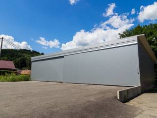 Pored poslovnog prostora se nalazi i montažna skladišna hala površine 150 m2, koja dodatno proširuje kapacitete za skladištenje ili proizvodnju. Dvorište je asfaltirano, sa dovoljno mjesta za parkiralište te je pogodno za kamionski prijevoz.