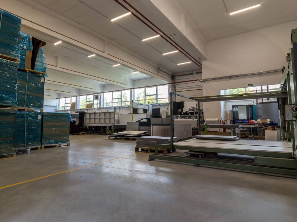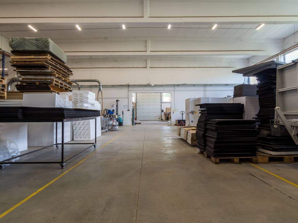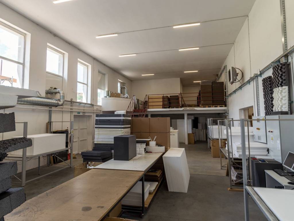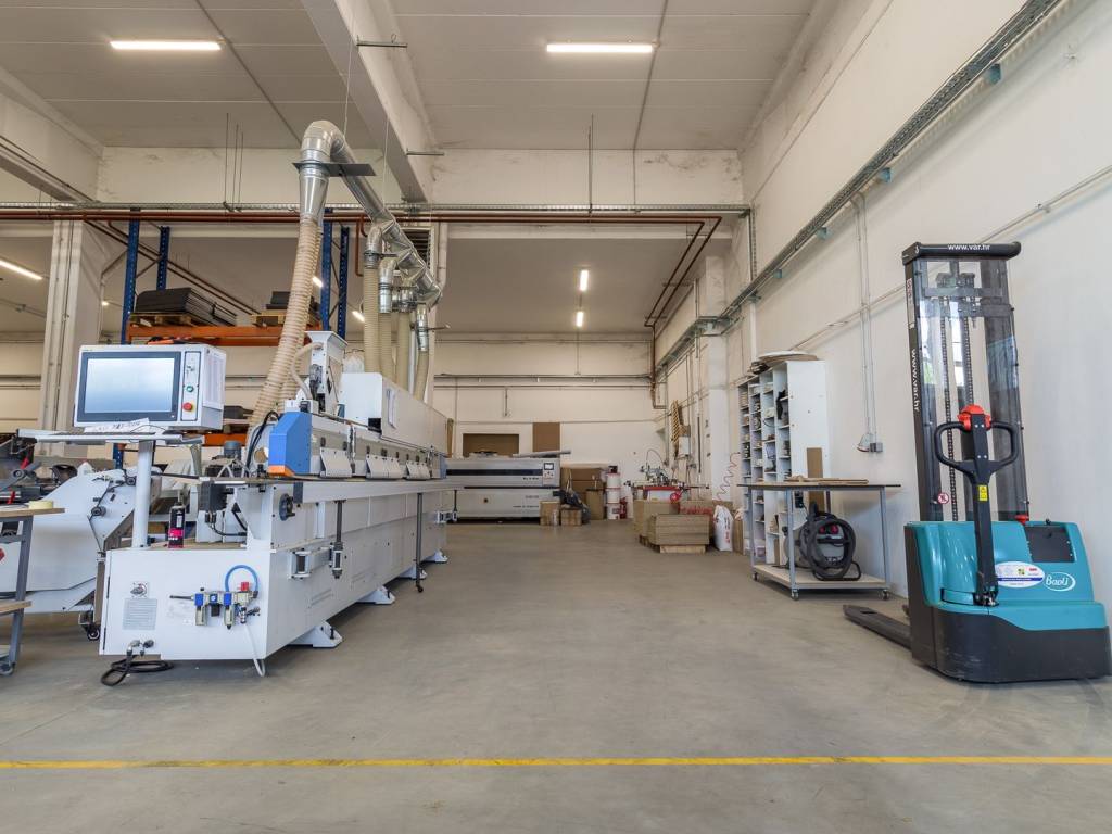 Prizemlje (1.468 m2) obuhvaća tri velika proizvodna pogona, dvije manje radionice, dvije skladišne prostorije, dva sanitarna čvora, kotlovnicu te glavni hodnik s ulaznim prostorom.