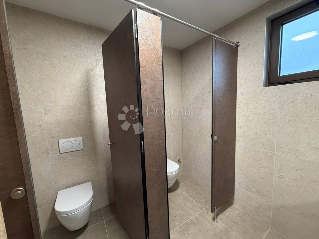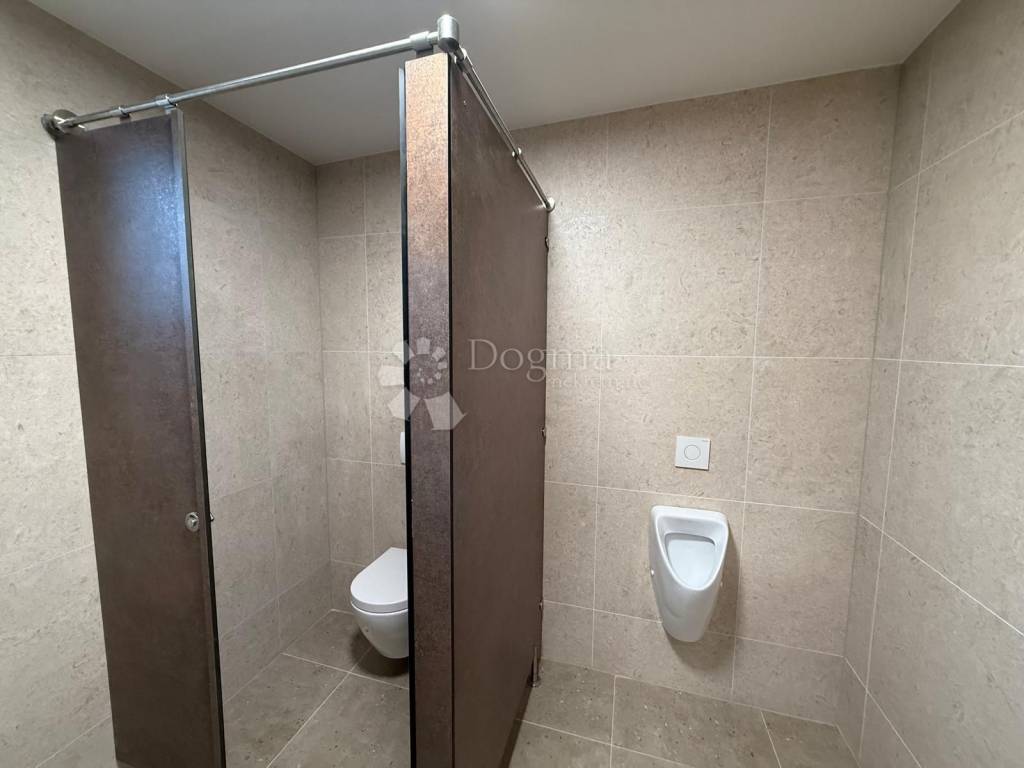 Sanitarni prostori izvedeni su na razini koja se ne očekuje u ovakvom tipu prostora: odvojeni muški i ženski WC, moderne kabine, veliki umivaonici, prostrani pultovi i neutralne kamene plohe koje djeluju čisto, elegantno i dugotrajno.