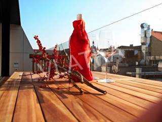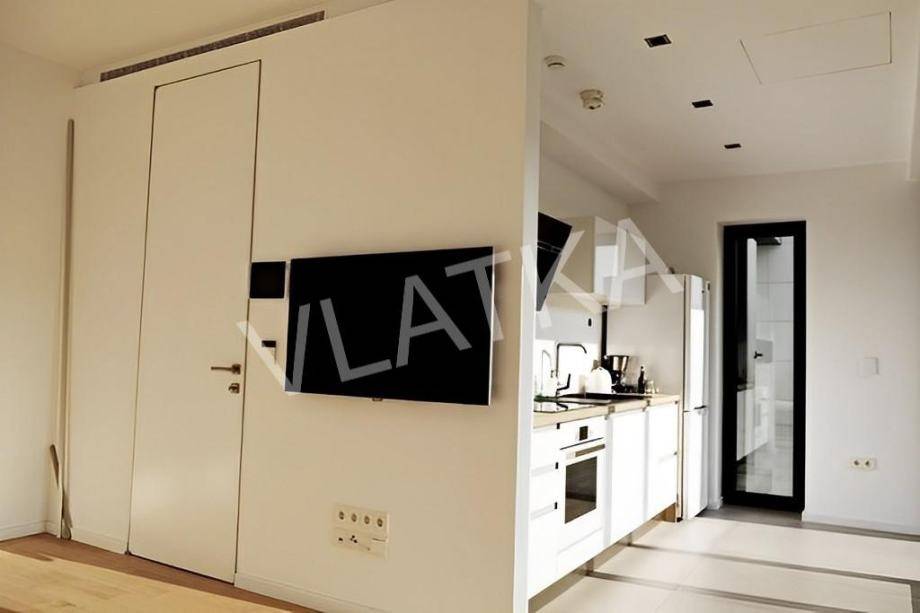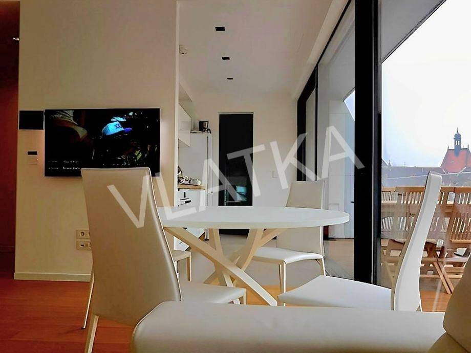 À vendre : un appartement d'une pièce luxueusement meublé dans le prestigieux complexe résidentiel et commercial Ban Center, situé en plein cœur de Zagreb, à deux pas de la place Ban Jelačić et de la cathédrale de Zagreb.