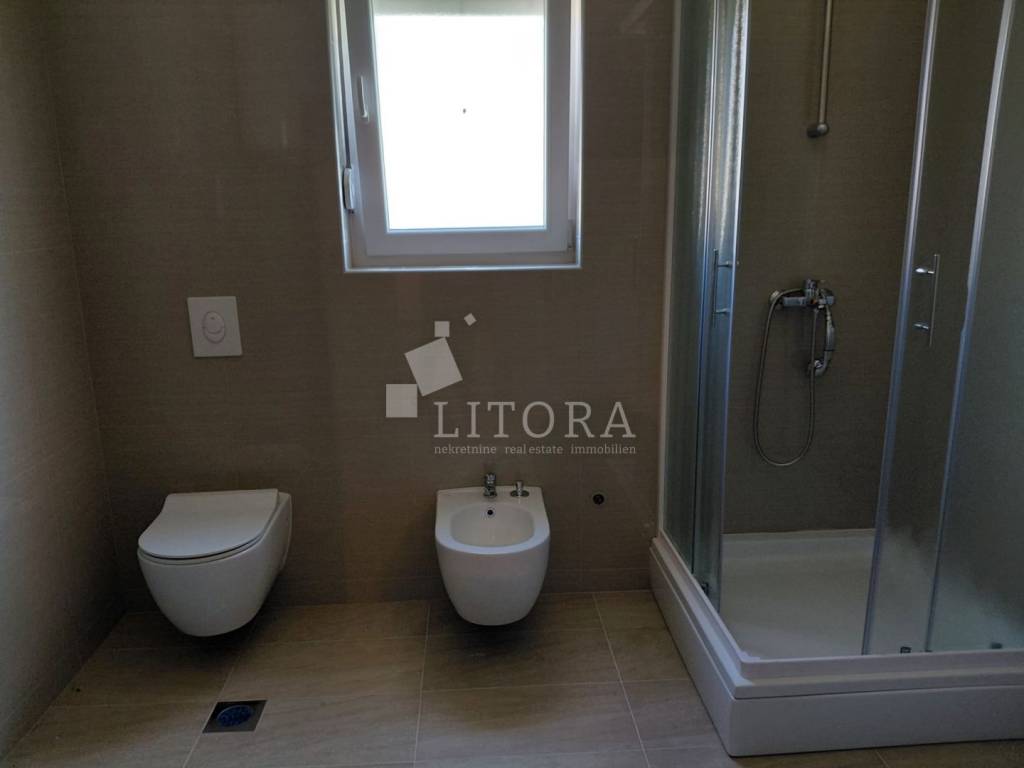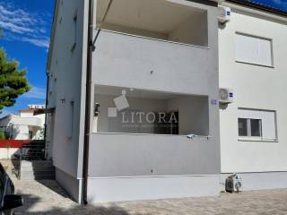 In a quiet location in Vodice, there is a newly built family house with 217 m² of usable surface, constructed on a plot of 512 m². The house consists of two separate residential units, each with its own private entrance. On the ground floor there is a comfortable three-bedroom apartment comprising a hallway, three bedrooms, two bathrooms, a spacious kitchen, and a generous living room with access to the terrace. On the first floor there is also a comfortable three-bedroom apartment consisting of a hallway, three bedrooms, two bathrooms, a large kitchen, and a spacious living room with access to the terrace. The house has a small basement storage room. The yard is fully fenced, and the parking area is paved. The house is equipped with air conditioning. The ground-floor apartment is furnished and immediately move-in ready. The property is located 850 m from a well-maintained beach and 1,050 m from the town center. There is also the option to purchase the apartments separately. The apartments will be registered as individual residential units, each with its own garden area and parking space.
