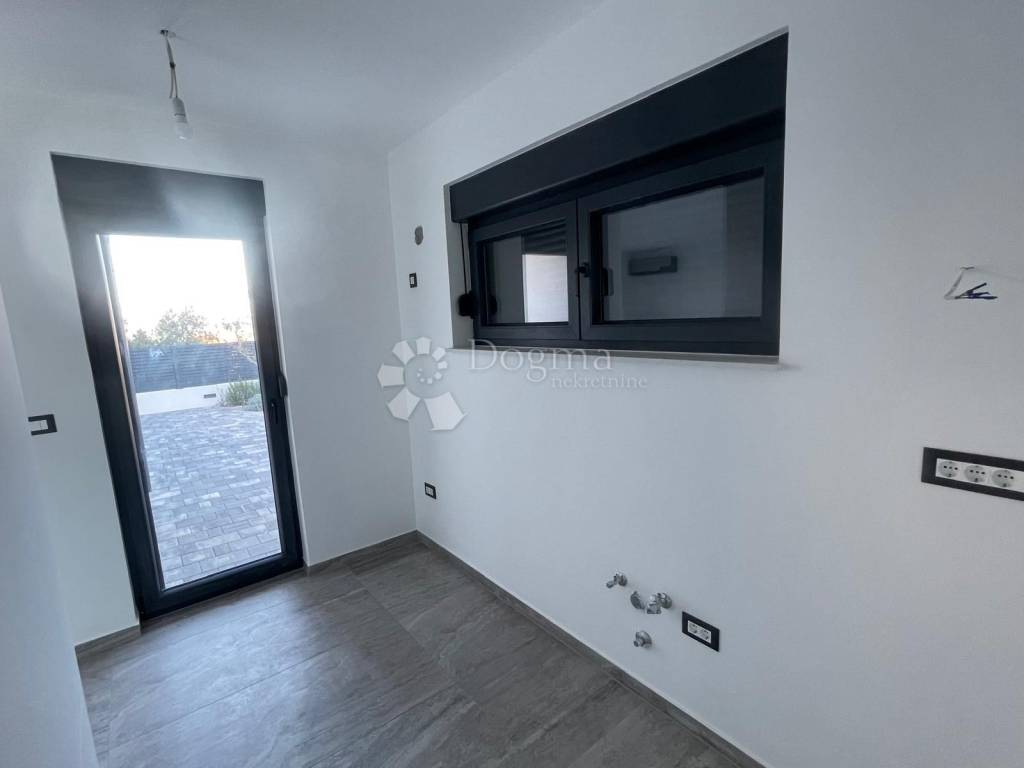 For sale is a modern two-bedroom apartment S1, located on the ground floor of a high-quality new building with a total of five apartments, in a quiet street in an excellent location in Murter only 580 m from the beach and 580 m from the town center.