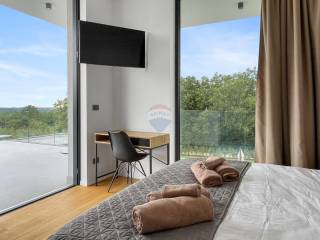 The house is located on a plot of about 1450 m2 and has a total usable area of about 260 m2. On the ground floor there is a spacious living area - living room, kitchen, bathroom for guests and one bedroom with its own bathroom. From the living room and bedroom there is access to a landscaped garden with an outdoor kitchen and a large pool of 50 m2.