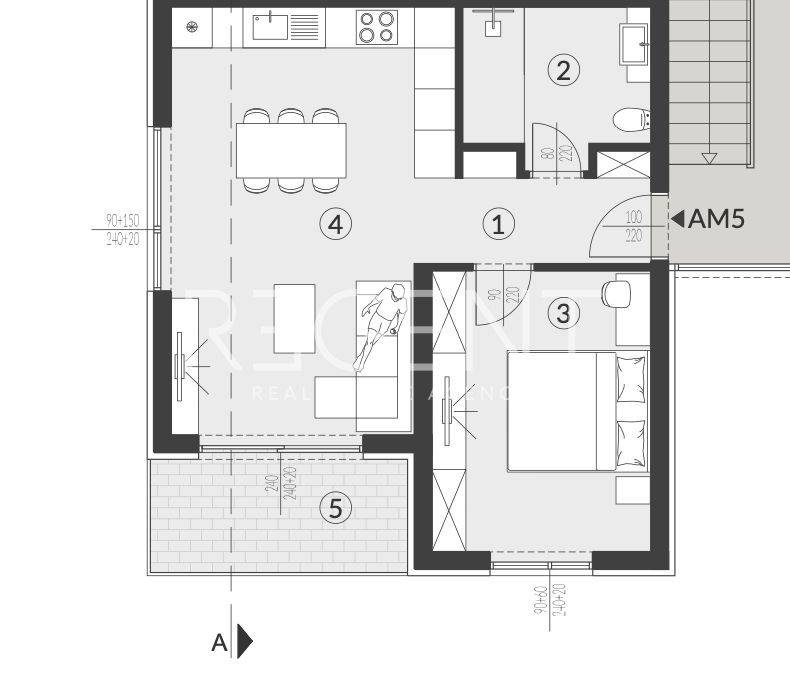 Appartement d'une chambre au rez-de-chaussée, situé dans le quartier paisible de Volme, près de Pula. L'appartement se trouve dans un immeuble neuf moderne à haute efficacité énergétique et convient à une habitation à l'année, aux vacances ou à la location touristique. La surface nette totale est de 44,16 m², et se compose d'un couloir avec dressing, d'une salle de bain, d'une chambre et d'un salon avec cuisine et salle à manger. L'appartement dispose également d'un jardin de 4,59 m² et d'une place de parking PM8 de 3,12 m², ce qui fait un total de 51,87 m². Il est équipé d'un chauffage au sol dans toutes les pièces, de la climatisation Mitsubishi, de menuiseries PVC avec triple vitrage et de volets roulants en aluminium avec moteur électrique. Un revêtement de sol en céramique de haute qualité Marca Corona est installé, et la façade est réalisée avec une isolation supplémentaire et de la pierre naturelle Travertino Classico. L'emplacement est calme et entouré de verdure, à proximité d'une école, d'une garderie, de commerces et de toutes commodités. Le cap Kamenjak et la mer sont à proximité immédiate, et l'aéroport de Pula est à seulement 15 minutes en voiture. L'achat est possible directement auprès de l'investisseur, sans commission et sans taxe sur la vente immobilière. Pour plus d'informations ou une visite, n'hésitez pas à nous contacter.