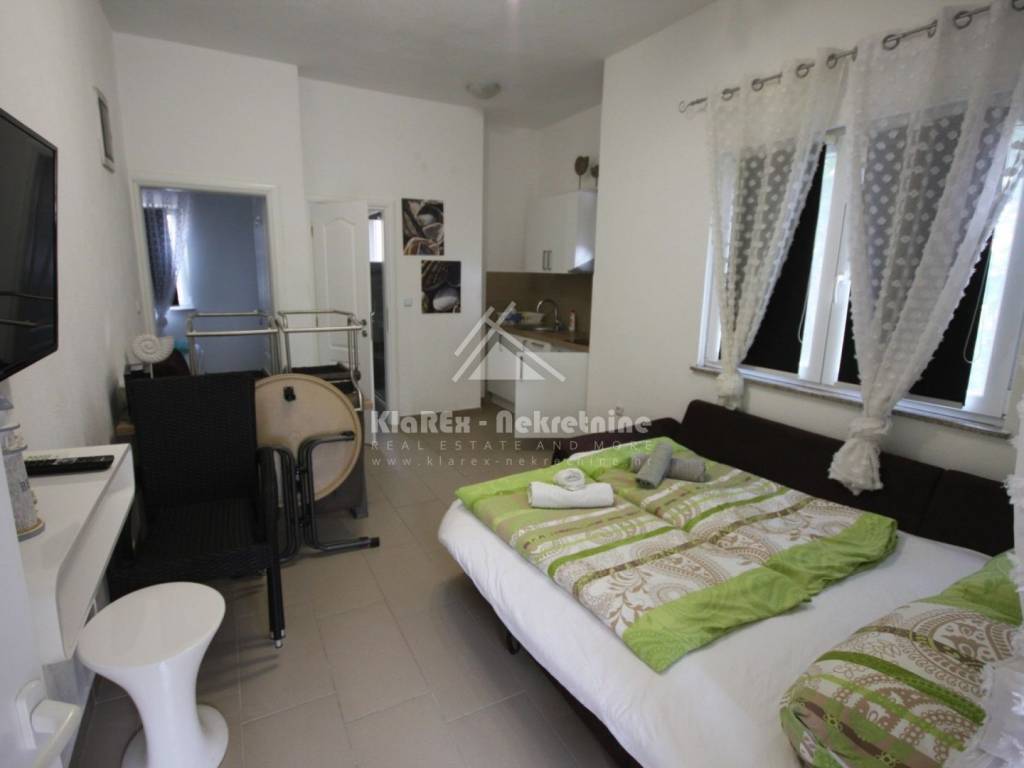 A house is for sale in Srima, a two-story building with a residential area of 583.10 m2 built on a plot of land of 409 m2. The house is about 200 meters from the arranged beach and was built, or rather intended, for the tourist rental business. The house has seven apartments and a unfurnished basement of 130 m2. In addition to the above, there is a furnished basement. In addition to tourism, the house can also be used for personal needs, although the emphasis is on tourist rental, and given the annual income of about 50,000 euros. The house has a yard of 251 m2, two driveways, and it is possible to park a number of cars in the yard. Clear ownership, proper documentation.