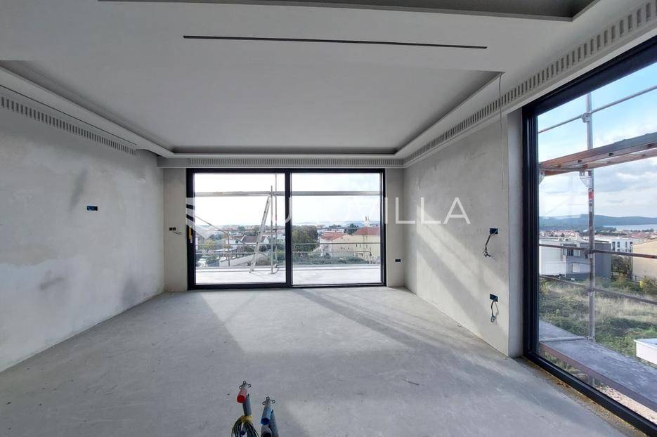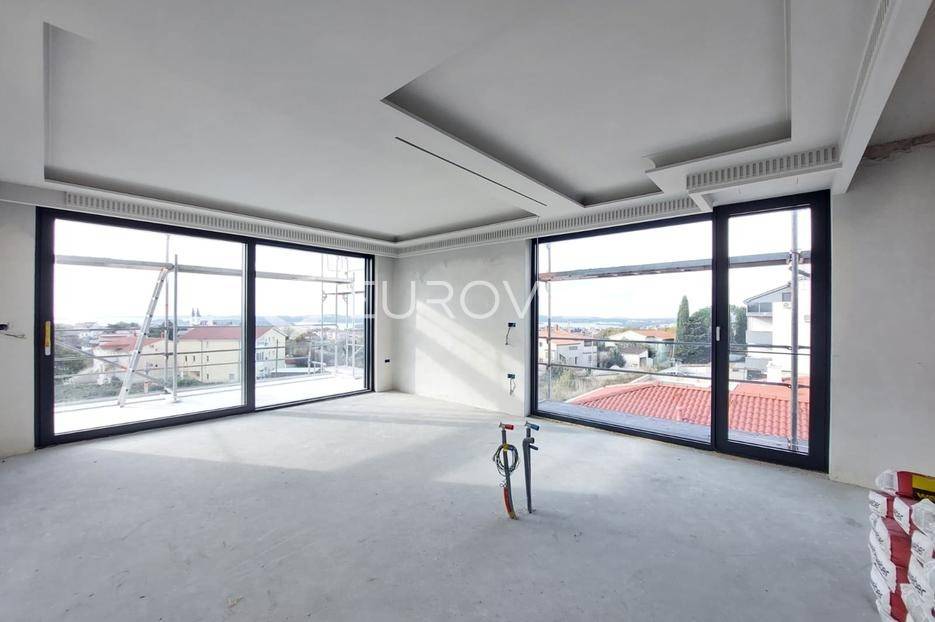Prodaje se luksuzni penthouse u Medulinu, jedinstven po prekrasnom, otvorenom pogledu na more i Medulinski zaljev iz svake prostorije. Stan površine 95 m² sastoji se od dvije spavaće sobe, svaka s vlastitom kupaonicom, dodatnog WC-a te prostranog dnevnog boravka spojenog s kuhinjom, koji također nudi impresivan pogled na more.Penthouse je opremljen stropnim klima uređajima s jednom vanjskom jedinicom, uz mogućnost zasebnog upravljanja klimom u svakoj prostoriji. Kupaonice imaju podno grijanje, a kroz cijeli stan proteže se elegantan travertin kamen. Ugrađena je vrhunska aluminijska stolarija Schüco s dvostrukim ostakljenjem te električni podizači roleta.Stanu pripadaju i dva privatna parkirna mjesta.