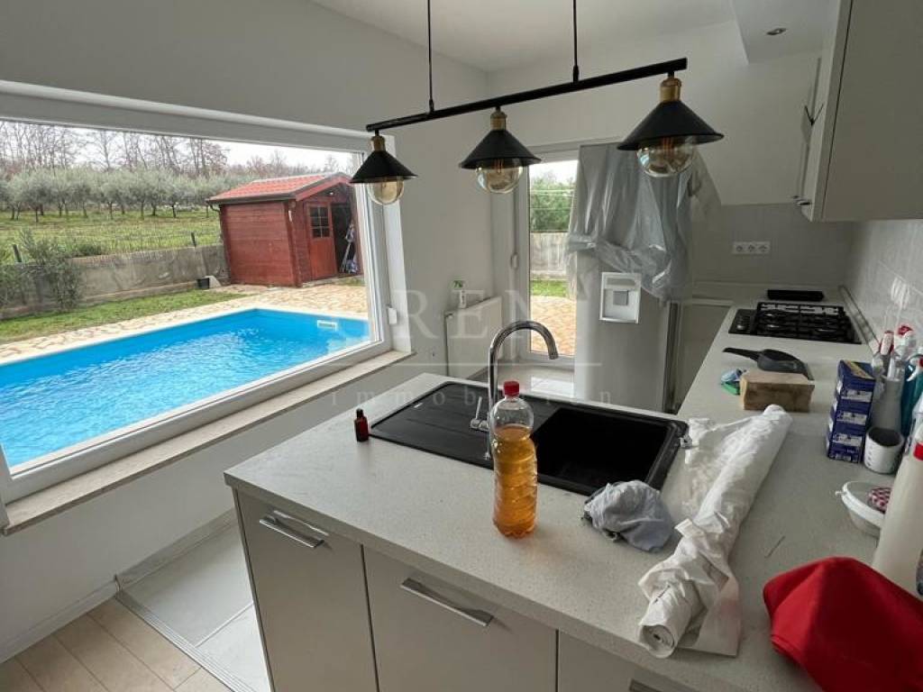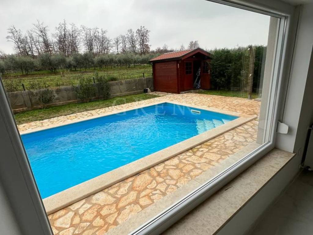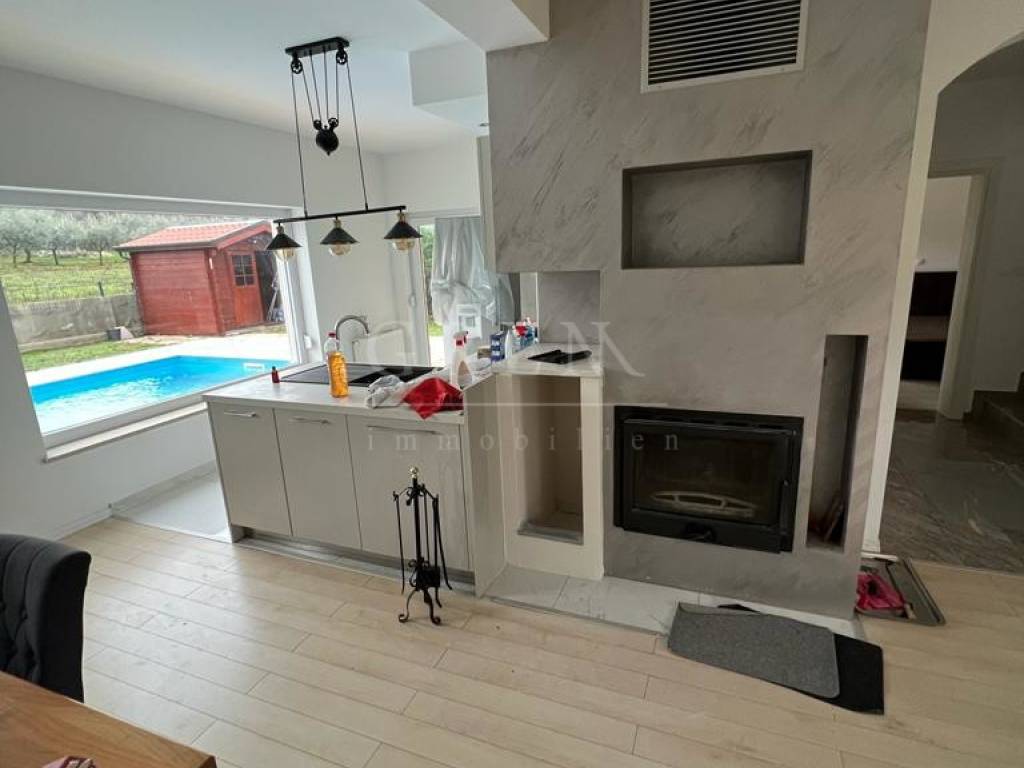 Ova prostrana kuća nudi udoban i luksuzan životni prostor idealan za obiteljski život ili uživanje u mirnom okruženju gdje graniči s poljoprivrednim zemljištem i predivnim pogledom na maslenik i šumu. S grijanim bazenom koji se lako podešava putem mobilnog telefona i sustavom elektrolize za održavanje čistoće vode, uživanje u vanjskim aktivnostima postaje jednostavno i ugodno čak i u hladnijim mjesecima. Dvije natkrivene terase pružaju izvrsno mjesto za opuštanje i druženje, uz veliki kamin u dvorištu koji stvara ugodnu atmosferu za obiteljske večeri ili druženje s prijateljima.