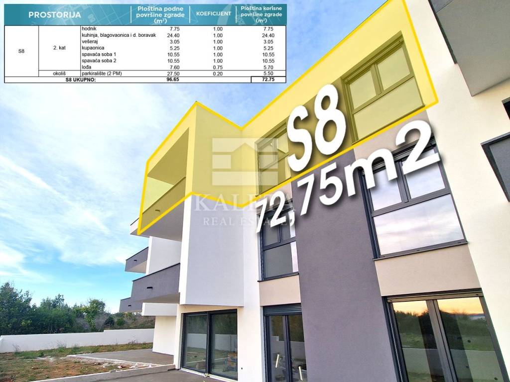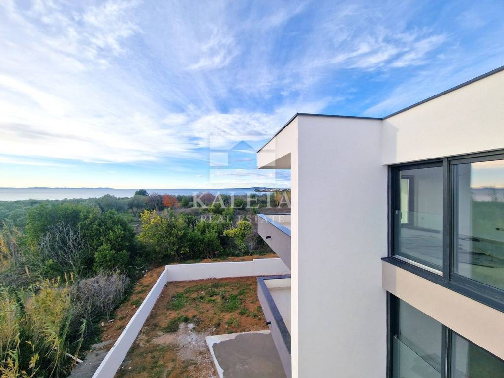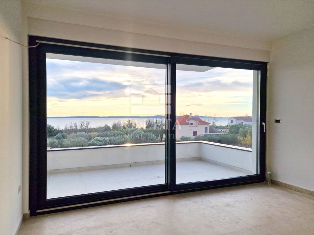 Just 300 m from the sea and the long beach on the sandy peninsula in Privlaka, surrounded by peace and olive groves, this high-quality newly built building with an elevator and sea view is located.