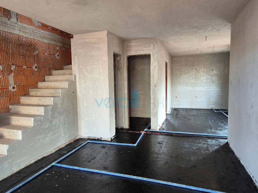 Nuova costruzione. Nuova casa bifamiliare con una superficie totale di 141 m2 si trova in una posizione richiesta a Malinska. Si compone di piano terra e primo piano. Al piano terra si trovano l'ingresso, una spaziosa cucina con sala da pranzo e soggiorno, un bagno, una camera da letto, un ripostiglio e una terrazza coperta di 17,32 m2. Dal soggiorno si accede alla terrazza coperta e al giardino con piscina e solarium. Al primo piano si trovano un corridoio, tre camere da letto, due bagni, una cabina armadio e un balcone di 8,76 m2. Costruzione e finiture di qualità che includono: ceramiche e sanitari di qualità, climatizzazione multisplit, riscaldamento a pavimento con pompa di calore, porta blindata e due posti auto nel giardino. Ottima posizione, a 780 m dal mare e dal centro di Malinska.