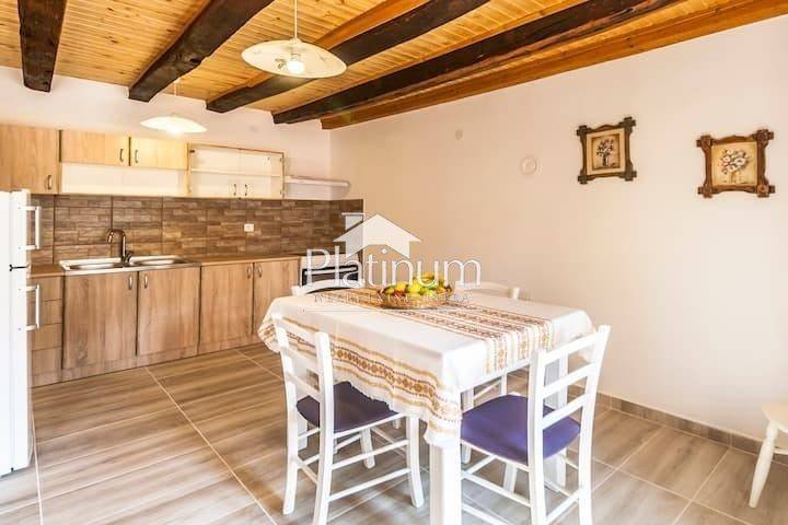 In vendita una casa ristrutturata di 122 m² composta da piano terra, primo piano e mansarda. Il piano terra è composto da soggiorno, sala da pranzo e cucina. Il primo piano è composto da due camere da letto e un bagno, più una mansarda. Il cortile è di 66 m². La casa è dotata di permesso di utilizzo e certificato energetico. Proprietà effettiva. Possibilità di affitto per scopi turistici. Informazioni al numero 00385 91 924 9486.