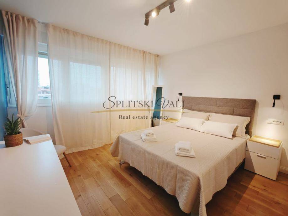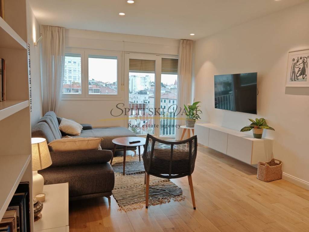 Posredujemo u najmu stan u centru Splita, predio Lučac. Nalazi se na zadnjem, 6. katu zgrade s liftom. 350 metara od plaže Bačvice, 500 metara od Pazara i Rive.