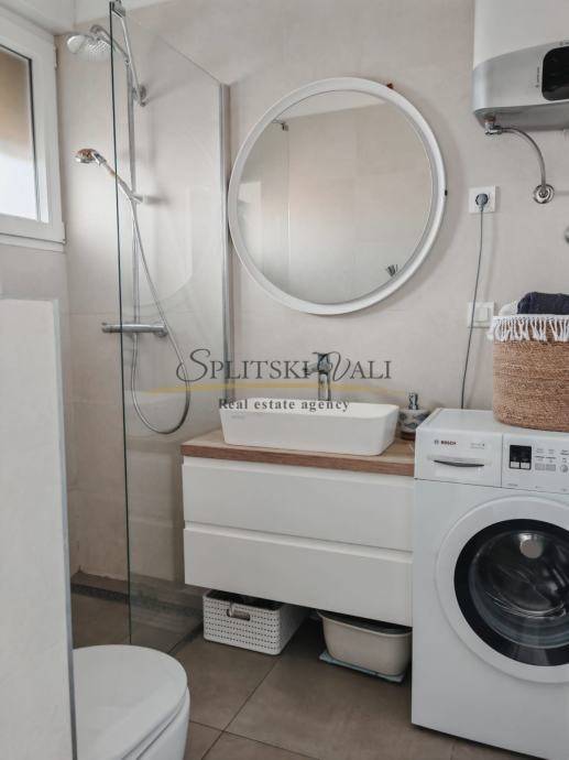 Stan je novoadaptiran, potpuno namješten i opremljen kućanskim potrepštinama (posuđe, kućanski aparati, poplun itd...).Podno grijanje u dnevnom boravku i kupaonici.