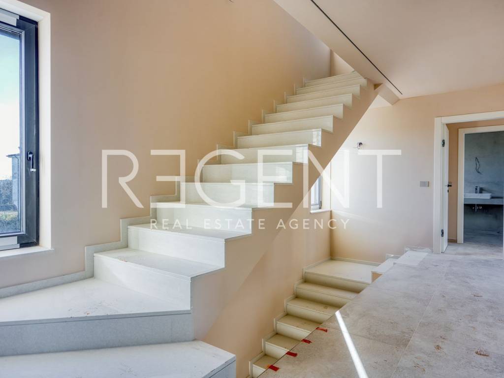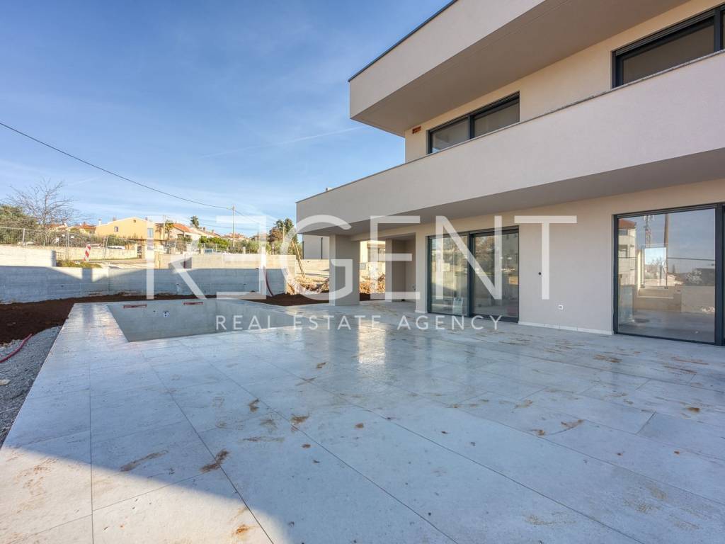 La moderna villa è situata in una zona tranquilla di Parenzo, a circa 14 chilometri dal mare. Si estende su piano terra, primo piano e terrazza sul tetto ed è ideale per famiglie e investitori che cercano qualità, comfort e privacy. La superficie abitabile totale è di 239,2 m², mentre la superficie netta totale, comprese le aree esterne, è di 433,7 m². Al piano terra si trovano l'ingresso, un bagno, la sala da pranzo, la cucina, la dispensa, il soggiorno, una camera da letto, un bagno, un locale tecnico e un locale caldaia, oltre all'ingresso coperto e alla terrazza coperta. Al primo piano ci sono un corridoio, tre camere da letto, due bagni e le scale, oltre a una terrazza coperta e una terrazza scoperta. La terrazza sul tetto offre un ampio spazio aperto per il relax e il soggiorno all'aperto. La piscina di 50,7 m² completa ulteriormente il contenuto della proprietà. La villa si trova in un ambiente tranquillo, vicino a tutti i servizi offerti da Parenzo e dintorni. Mare, negozi, ristoranti e necessità quotidiane sono facilmente accessibili, rendendo la posizione adatta per la vita, le vacanze o l'affitto turistico. Per ulteriori informazioni, non esitate a contattarci.