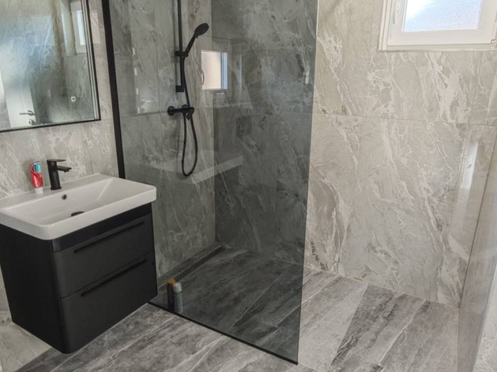 Kuću krasi dizajn popraćen kvalitetnim materijalom, a svakako valja istaknuti i opremljenost. Istaknuti treba podno grijanje na dizalicu topline (Bergen), Vaillant klime u obje etaže, električne dizalice roleta.